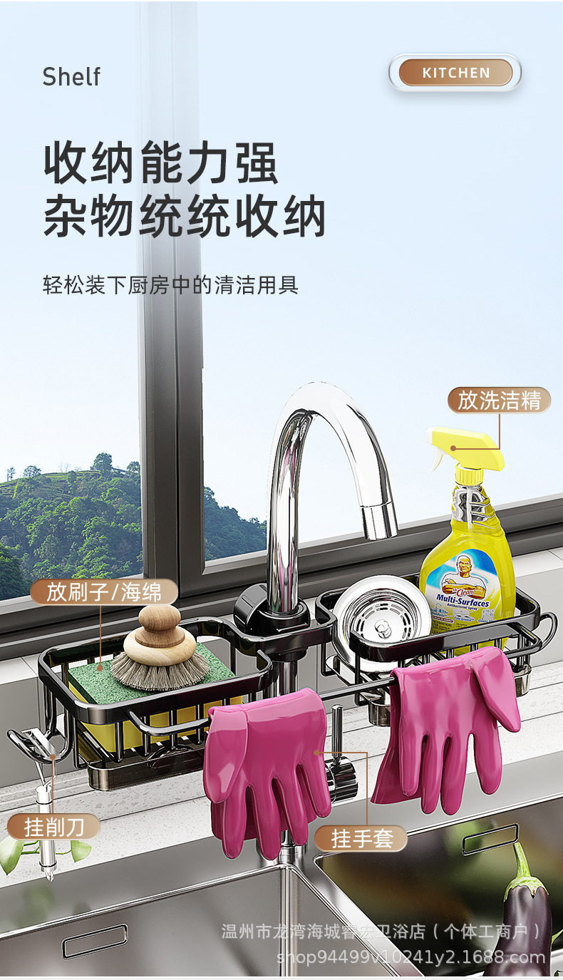 주방 수도꼭지 저장 랙 식기 세척 싱크대 가정용 배수 바구니 다기능 헝겊 저장 랙