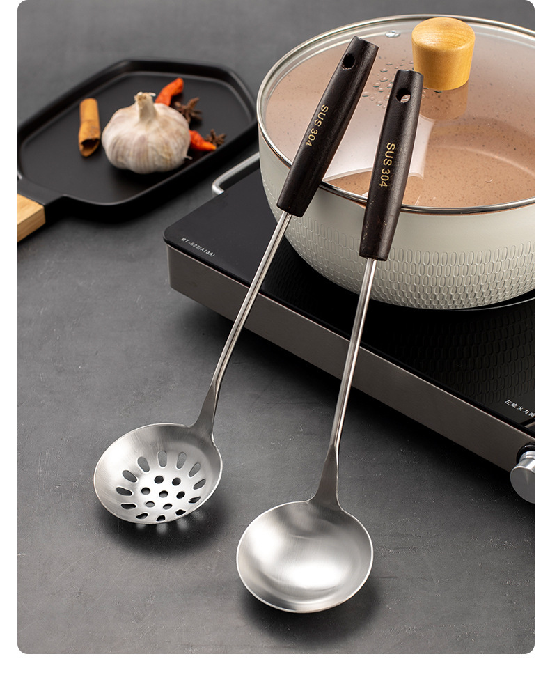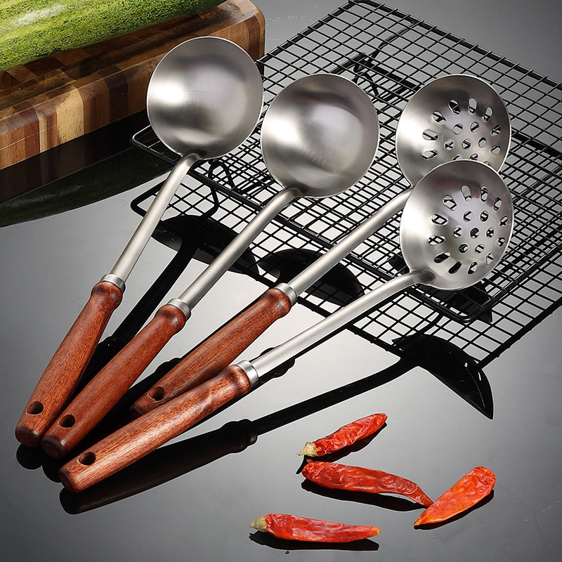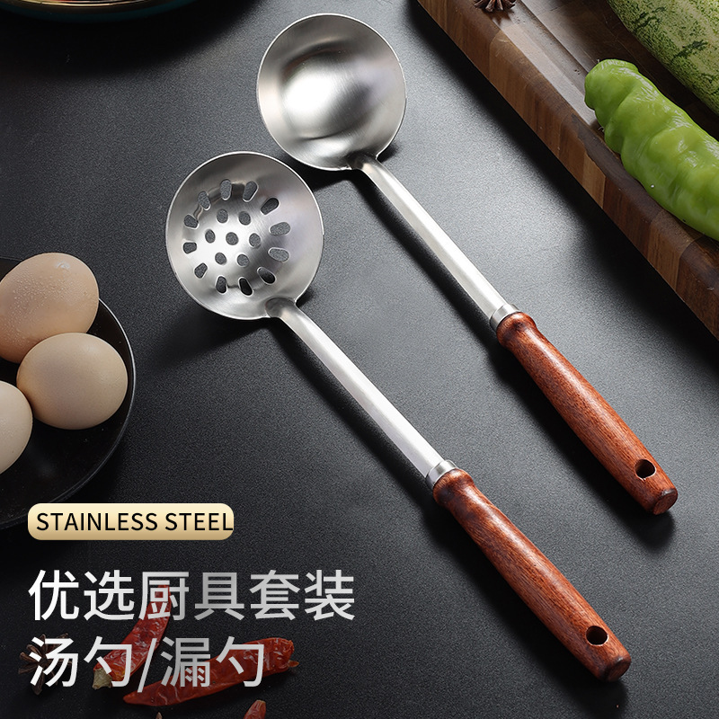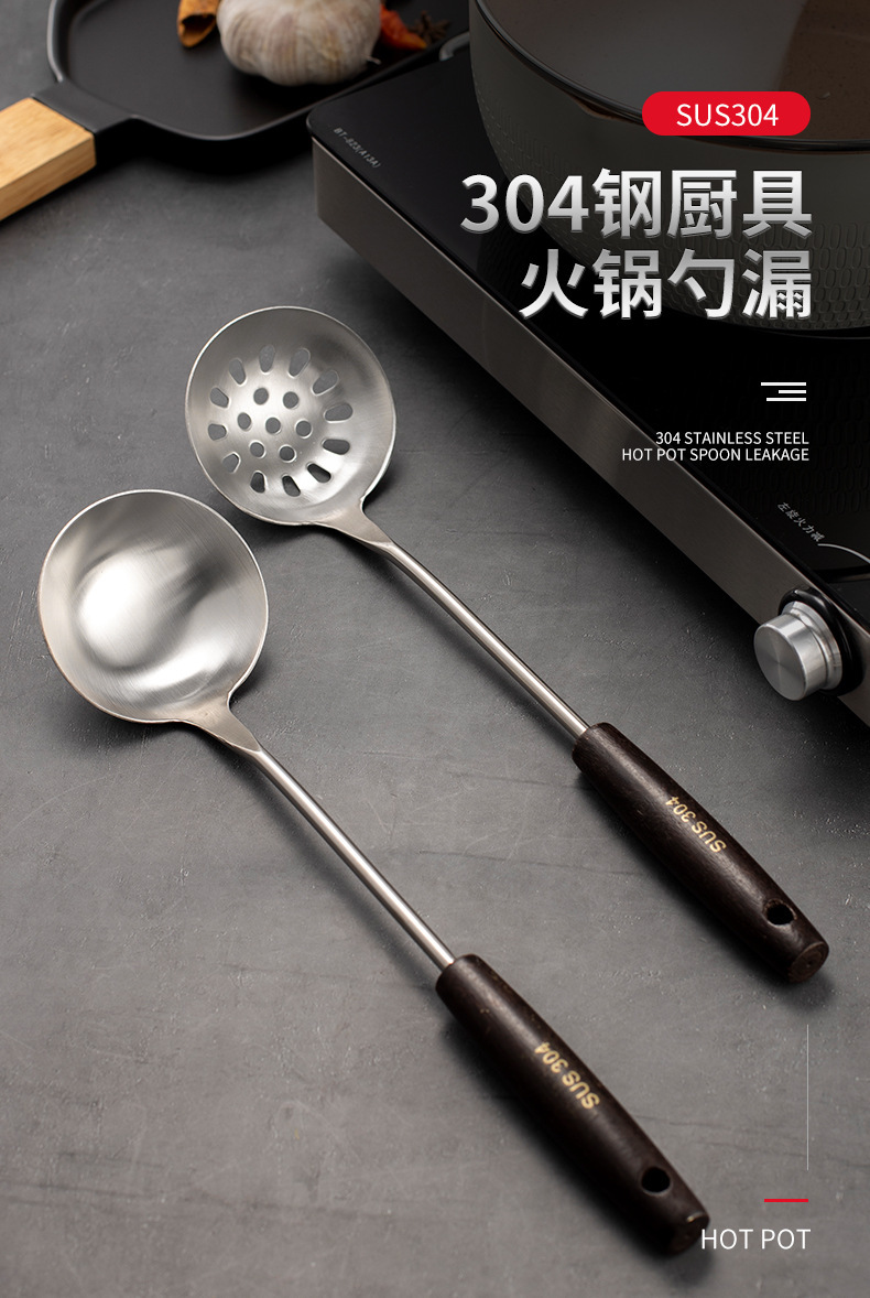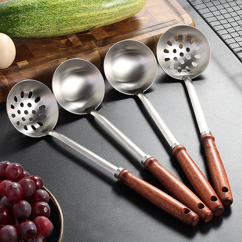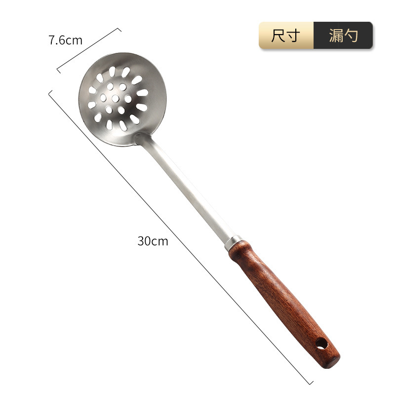 • 나무 손잡이 뾰족한 손잡이 스테인레스 스틸 수프 껍질 껍질 새는 주방 용품 식기 냄비 숟가락 주방 용품 요리 교수형 손잡이