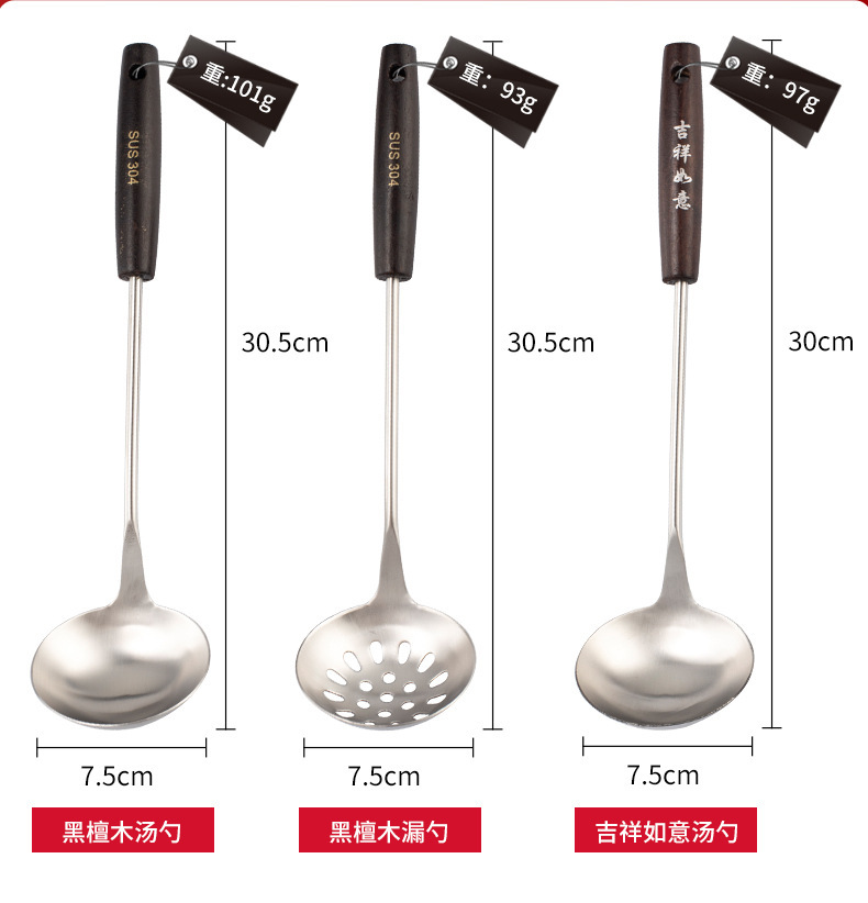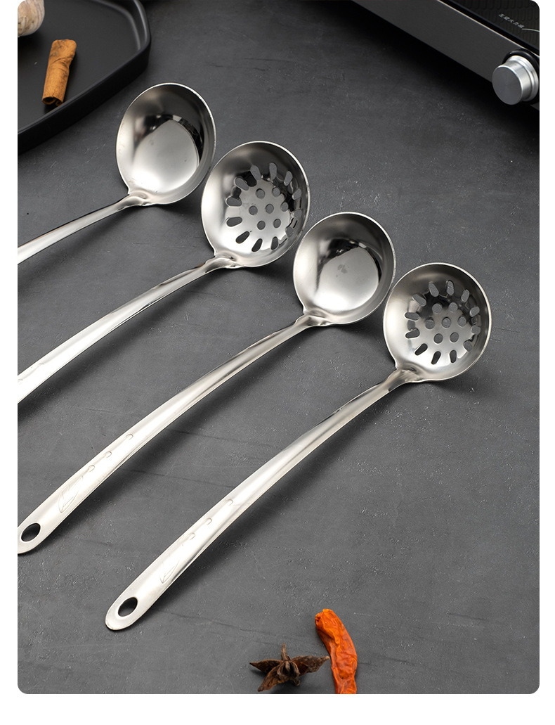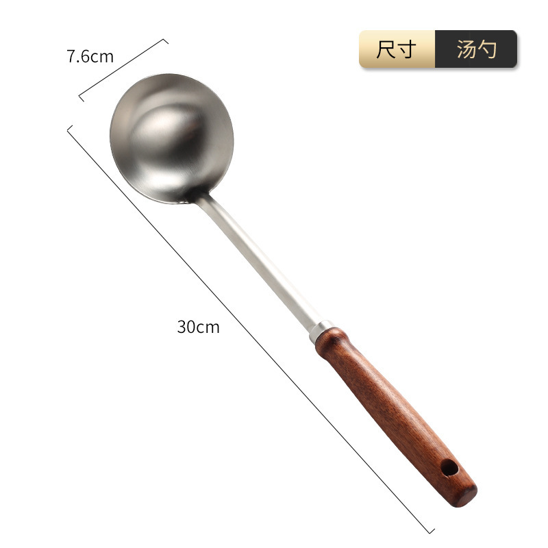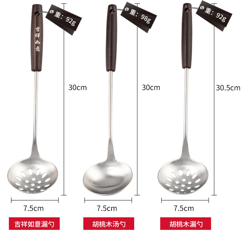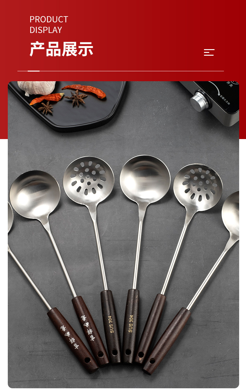 • 나무 손잡이 뾰족한 손잡이 스테인레스 스틸 수프 껍질 껍질 새는 주방 용품 식기 냄비 숟가락 주방 용품 요리 교수형 손잡이