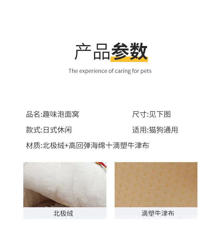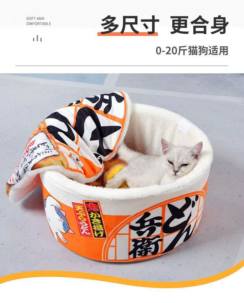 창의적인 인터넷 유명인 인스턴트 누들 고양이 둥지, 모든 계절에 적합한 폐쇄형 따뜻한 고양이 둥지, 탈부착 및 세척 가능한 소형견 둥지, 애완동물 둥지