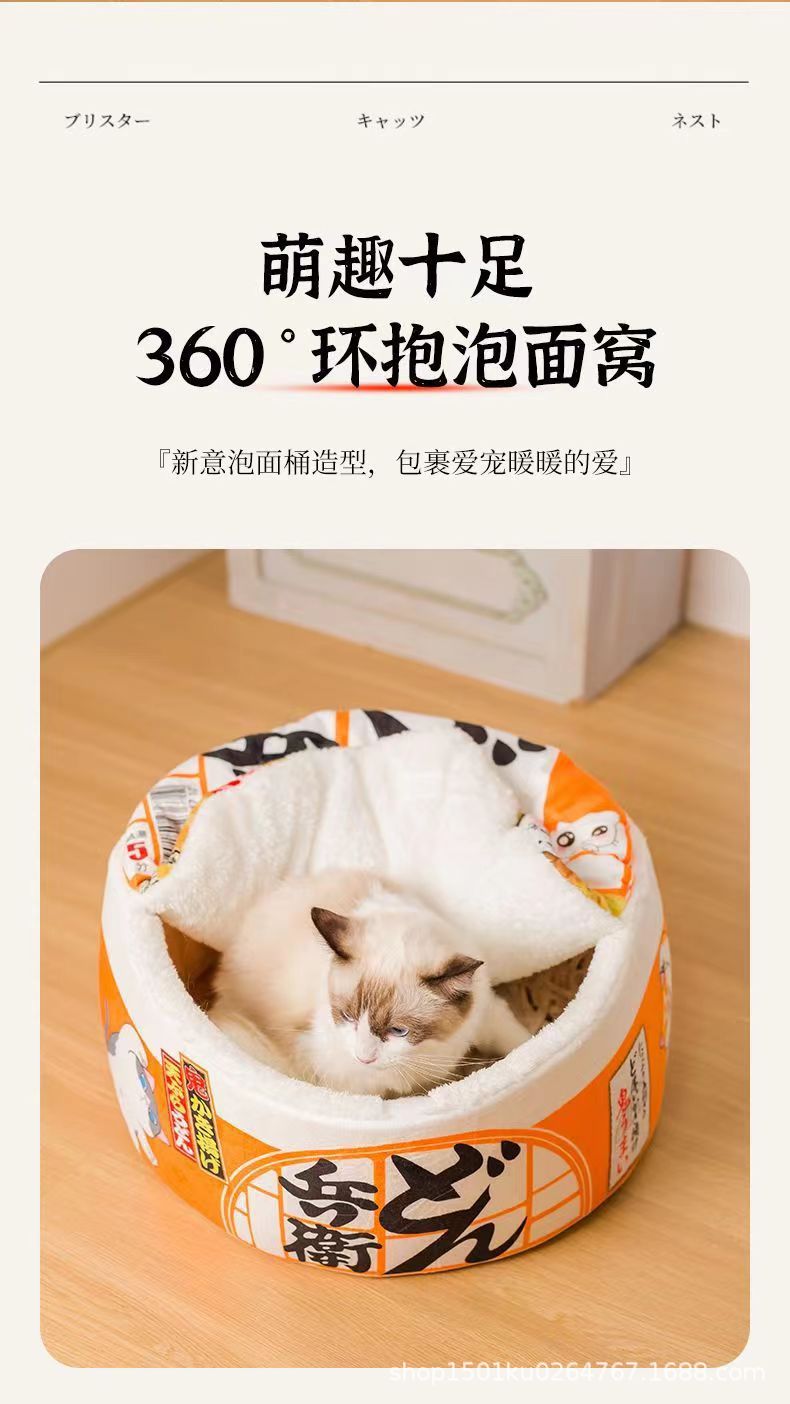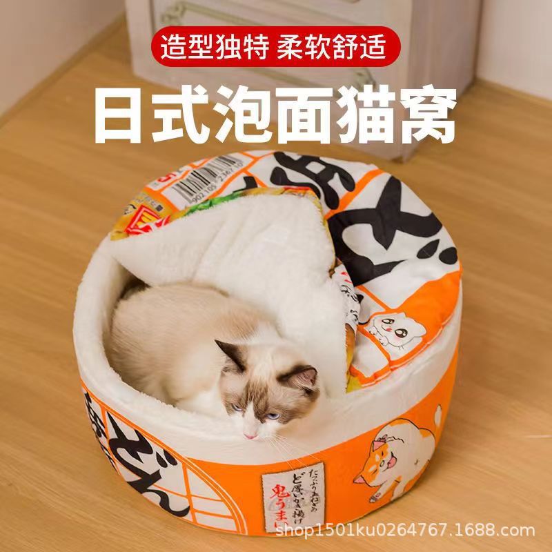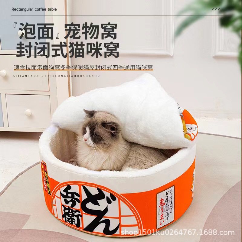 창의적인 인터넷 유명인 인스턴트 누들 고양이 둥지, 모든 계절에 적합한 폐쇄형 따뜻한 고양이 둥지, 탈부착 및 세척 가능한 소형견 둥지, 애완동물 둥지스토어 가기