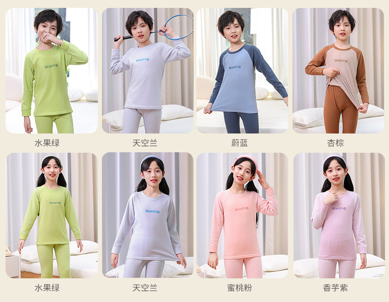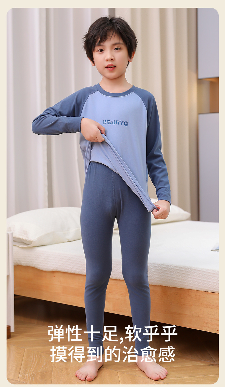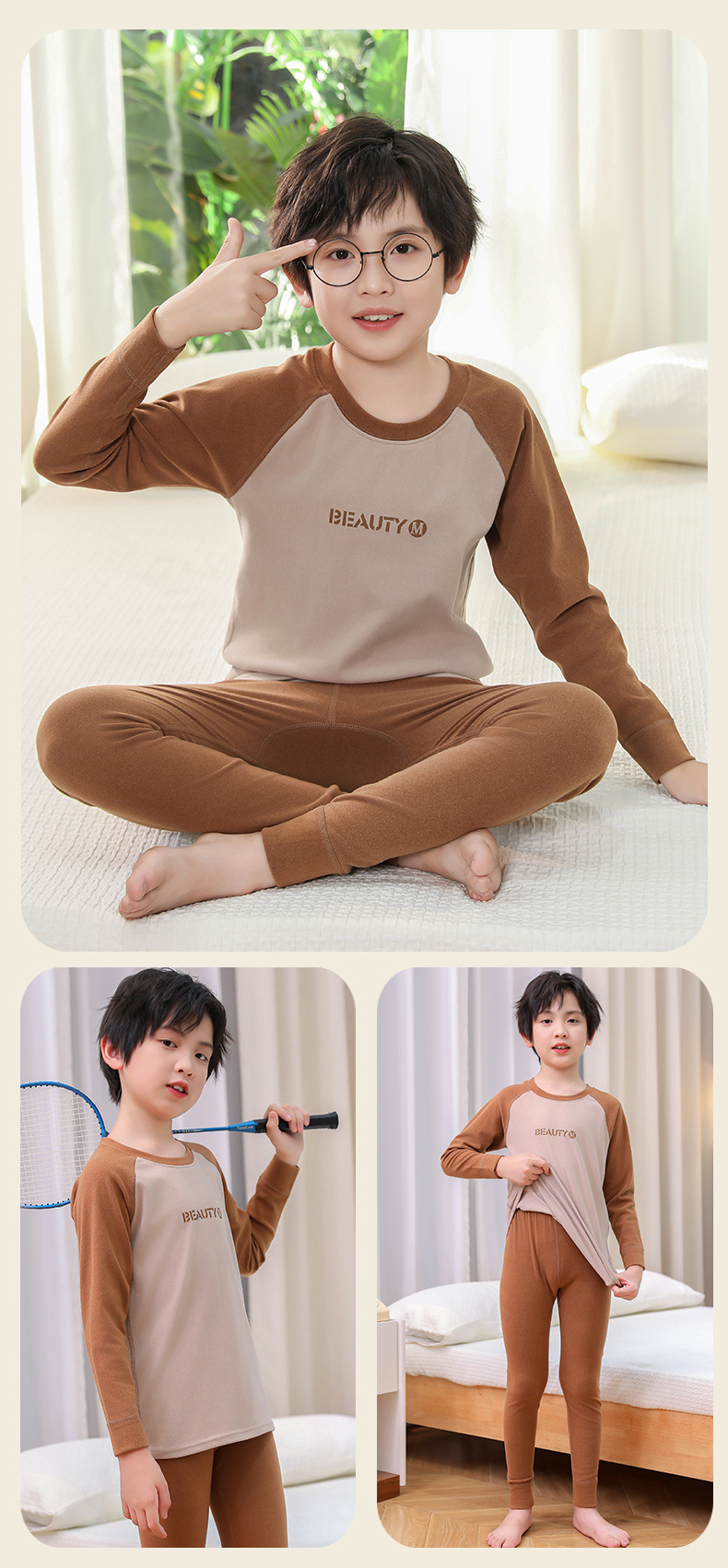 24 명의 소년 소녀 얇은 벨벳 라글란 소매 홈 의류 세트 접합 컬러 생방송 한 세대의 어린이 열 속옷