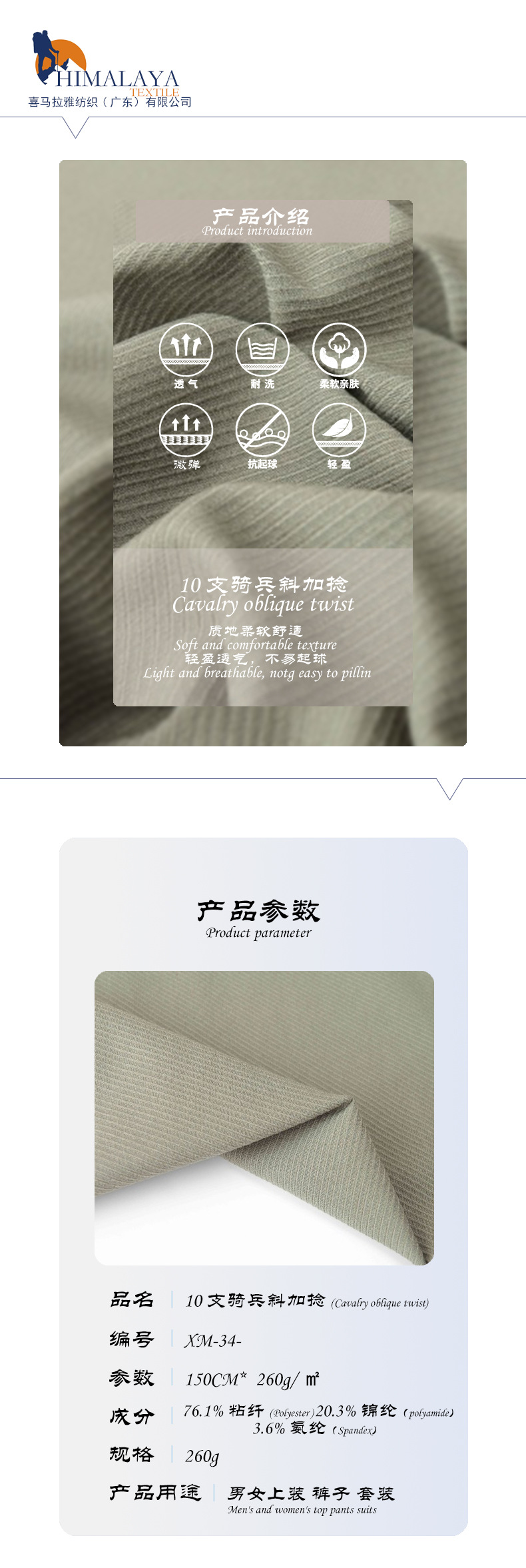 10피스 기병대 대각선 트위스트 두꺼운 기병대 대각선 두꺼운 능직 직물 패션 캐주얼 혼합 직물