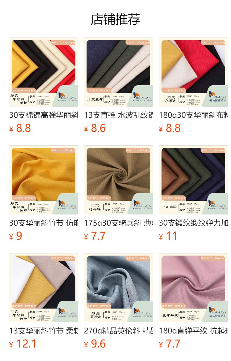 10피스 기병대 대각선 트위스트 두꺼운 기병대 대각선 두꺼운 능직 직물 패션 캐주얼 혼합 직물스토어 가기