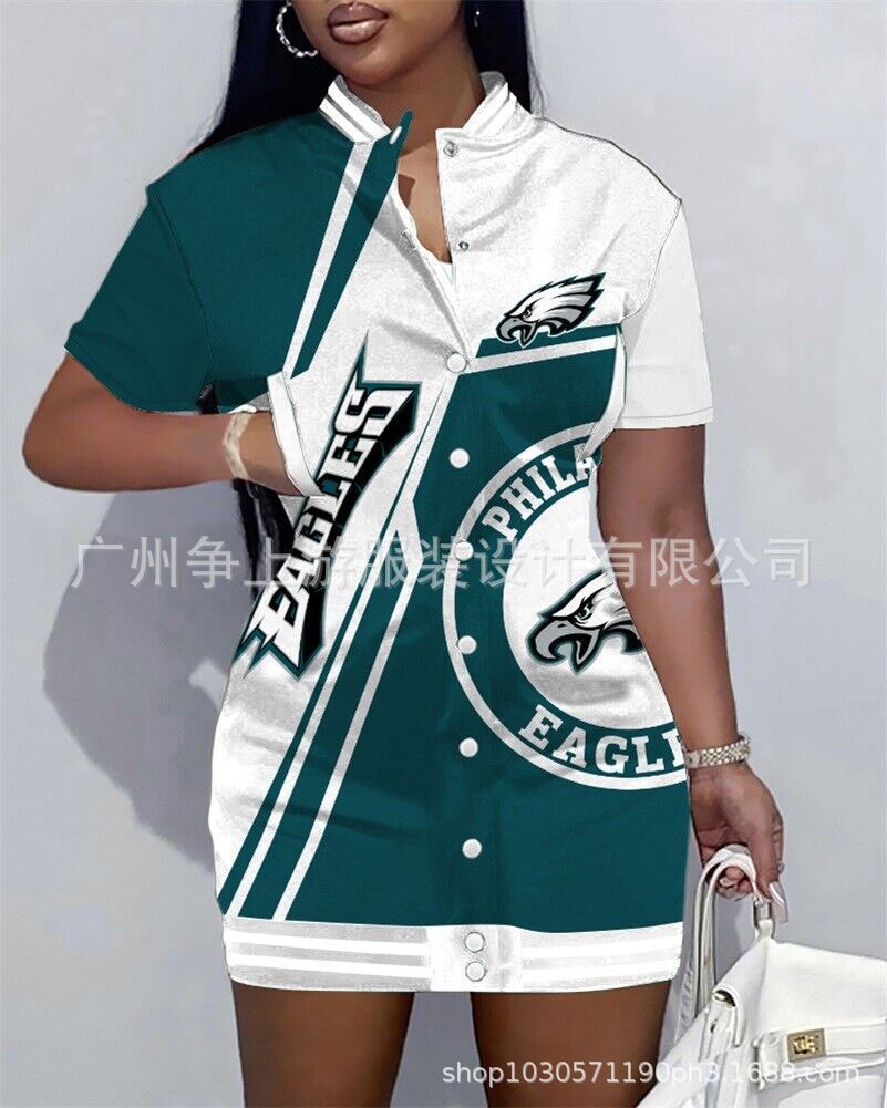유럽과 미국의 새로운 재킷 여자 NFL 반팔 인쇄 공 슬림 핏 럭비 그룹 캐주얼 맞춤형 재킷스토어 가기