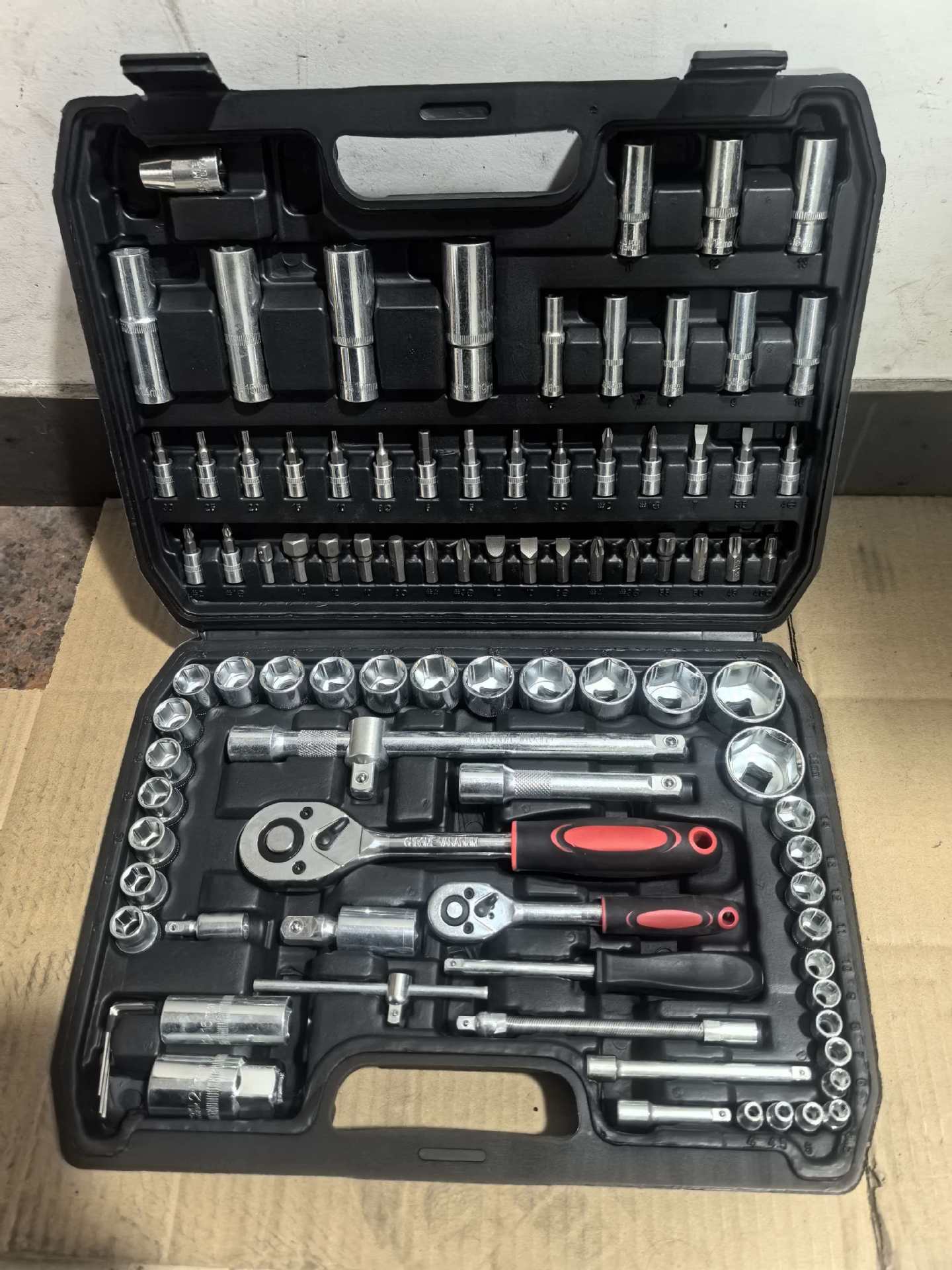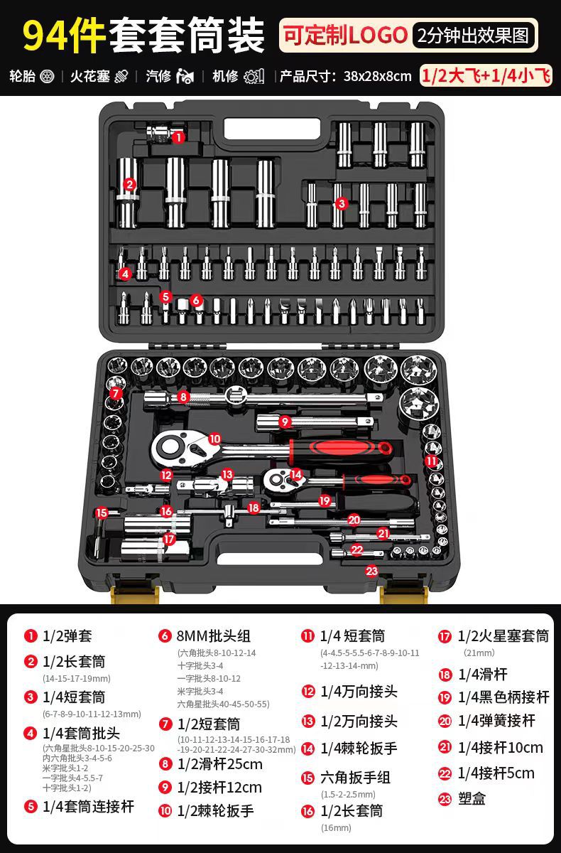 108 피스 세트 큰 플라이 래칫 렌치 조합 자동차 수리 94 피스 소켓 렌치 다기능 자동차 수리 도구 세트