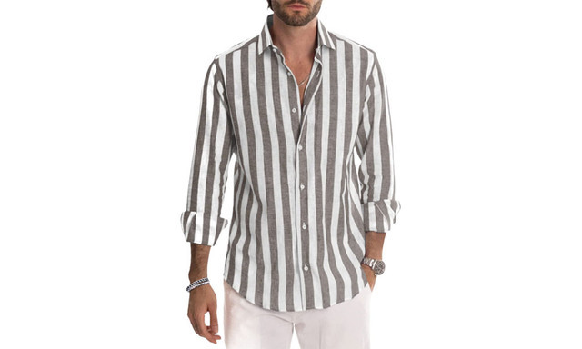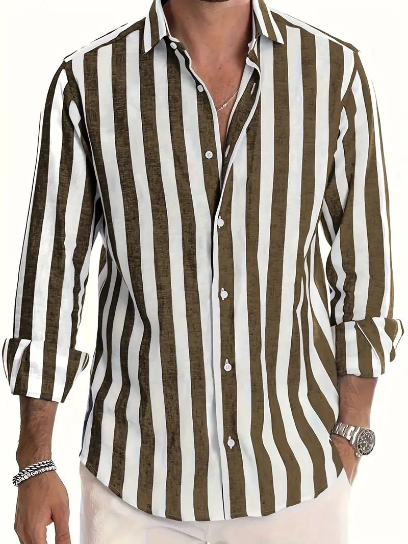 봄과 가을 아마존 AliExpress 유럽과 미국의 국경 새로운 남성 원사 염색 줄무늬 캐주얼 느슨한 긴팔 셔츠스토어 가기
