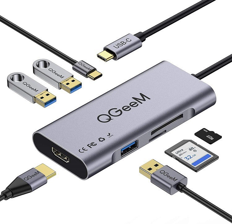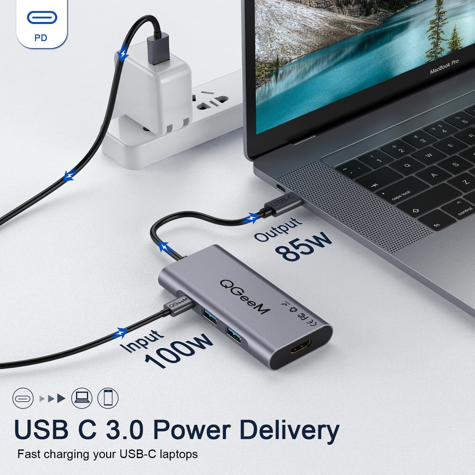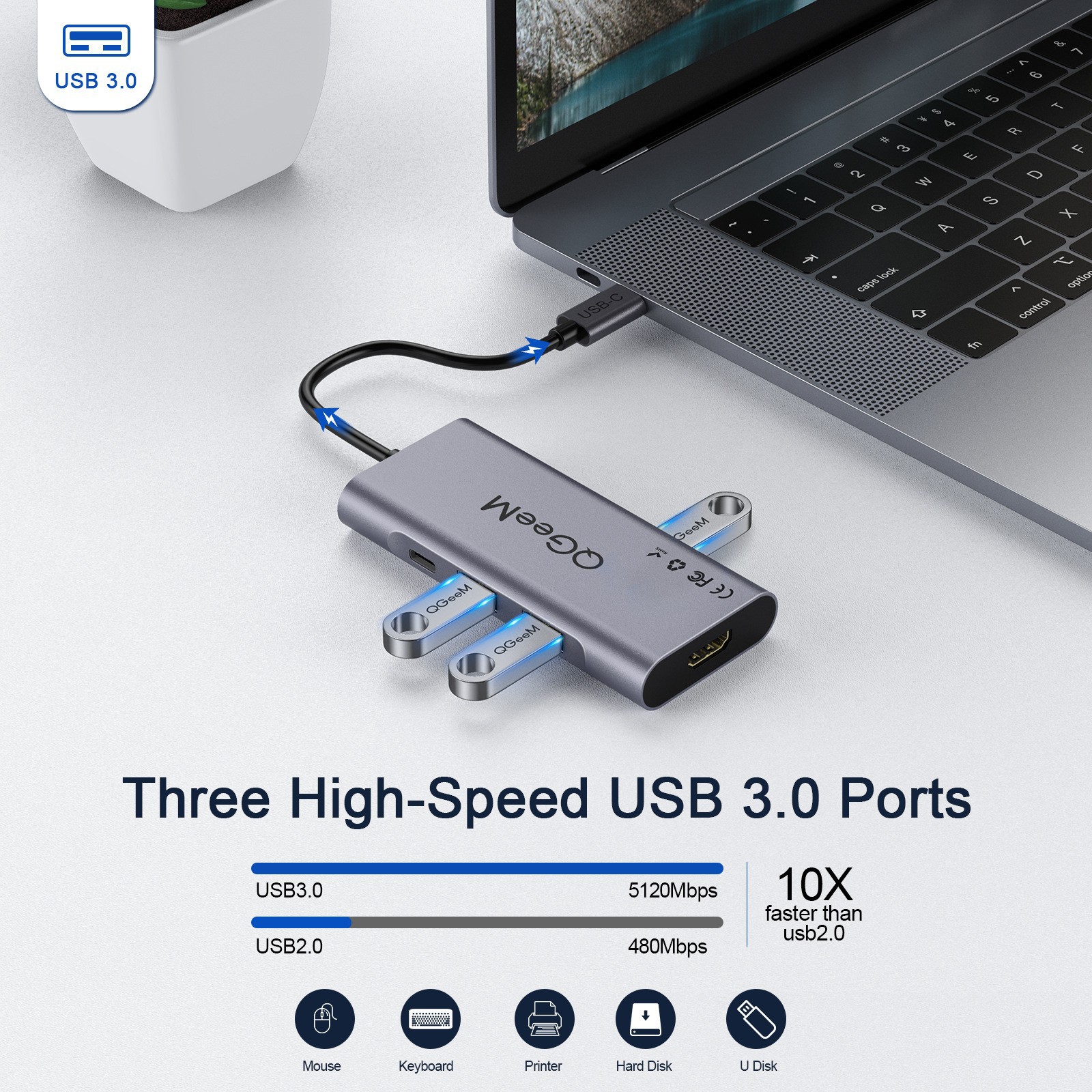 QGeeM USB3.0 7 대 1 확장 도크 다기능 허브 HDMI HD 비디오 컨버터