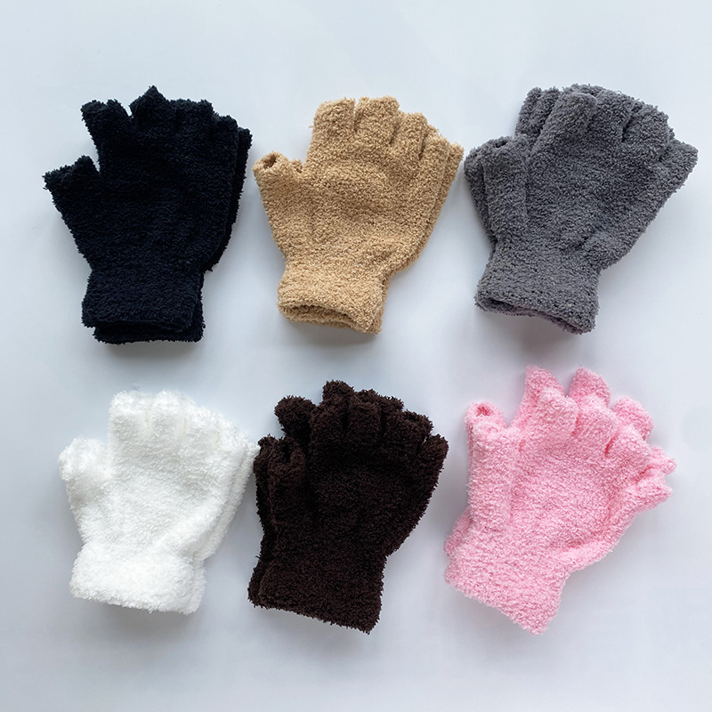 가을과 겨울 2024 산호 양털 반 손가락 성인 장갑 남성 기모 손가락 하프 벨벳 장갑 쉐이크 톤 복지 제품스토어 가기