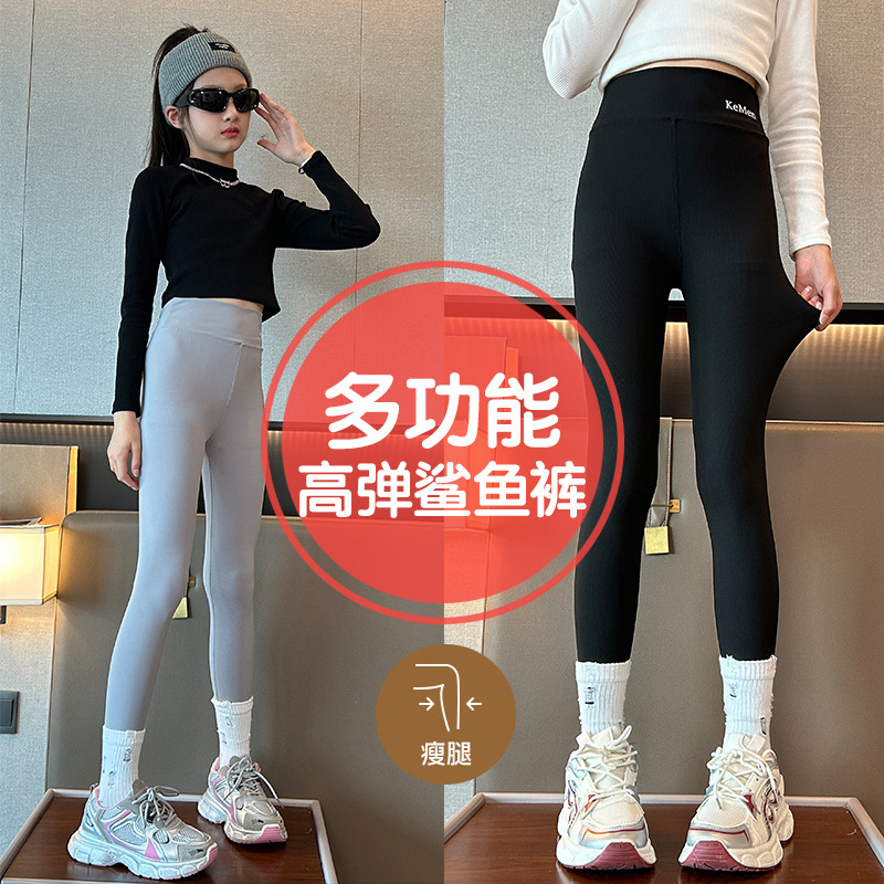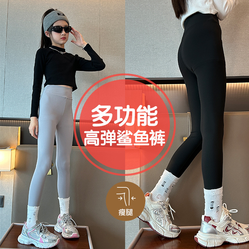 여아 샤크 팬츠 여름 얇은 아동용 아우터웨어 중대형 아동 슬리밍 요가 팬츠 9부 팬츠 스트레치 팬츠