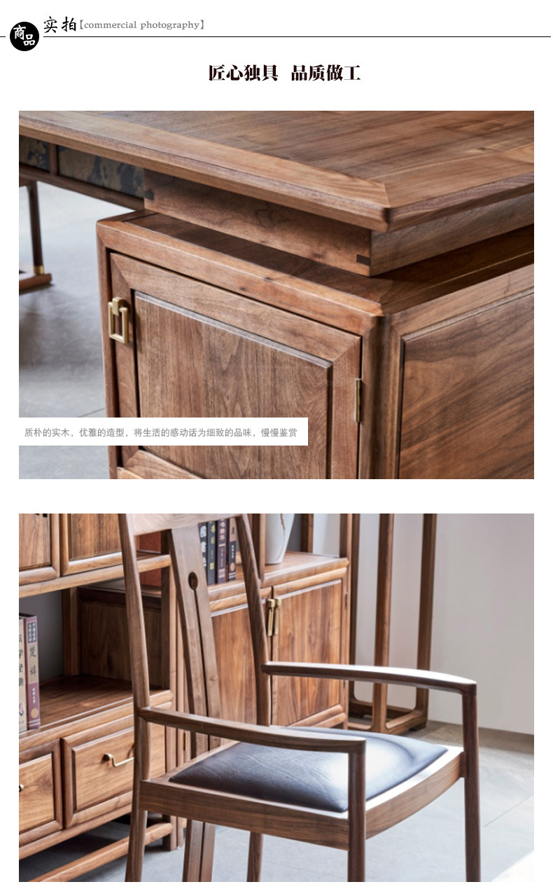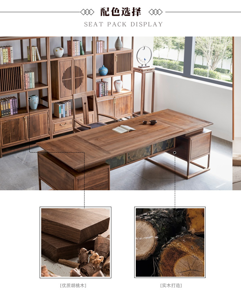 고급 통나무 보스 테이블 조합 북미 검은 호두 고품질 현대 작업대 확장 단단한 나무 책상