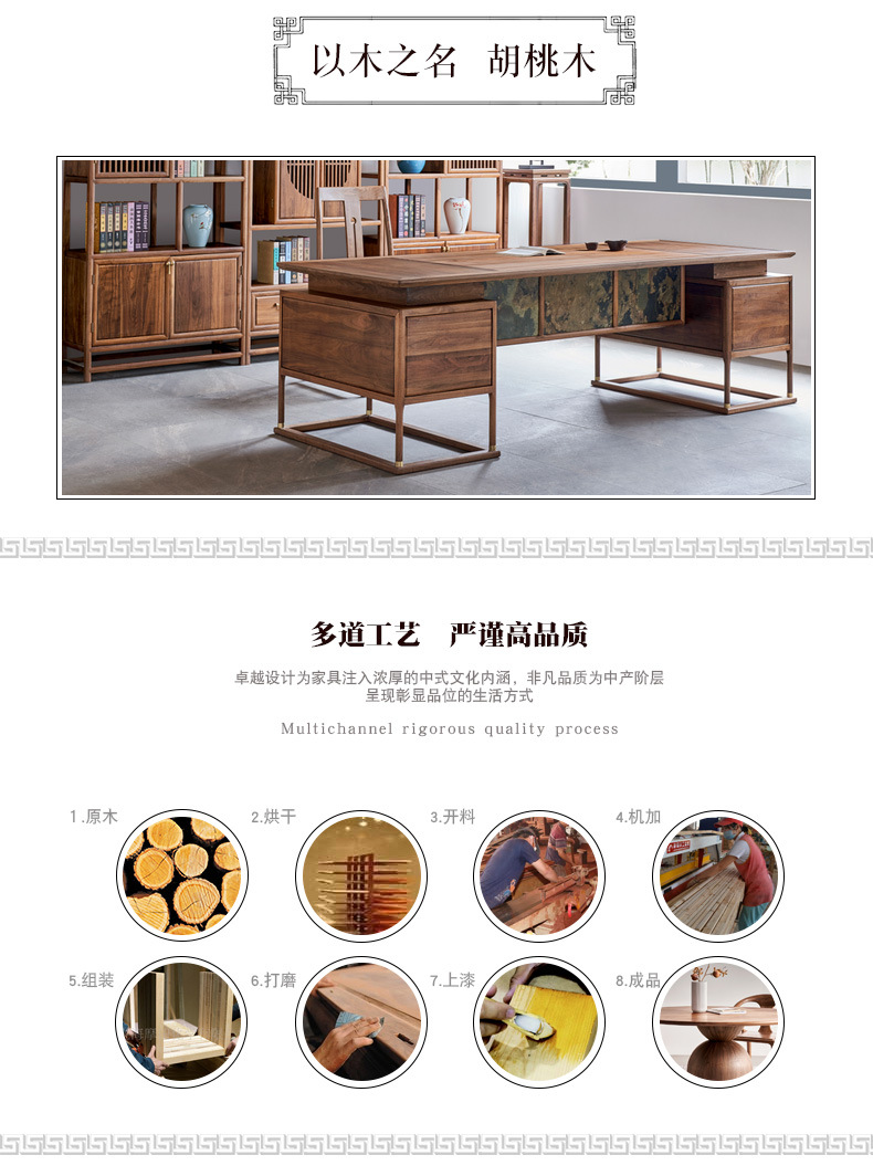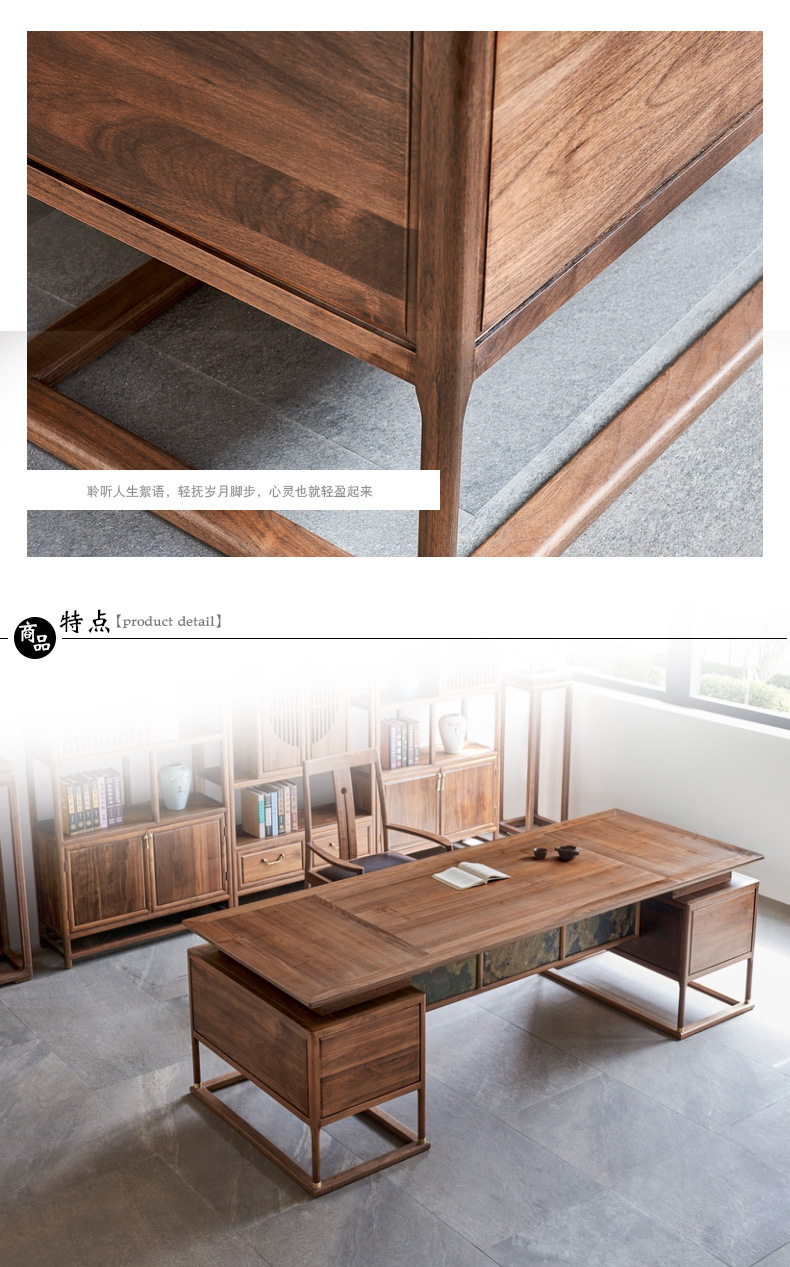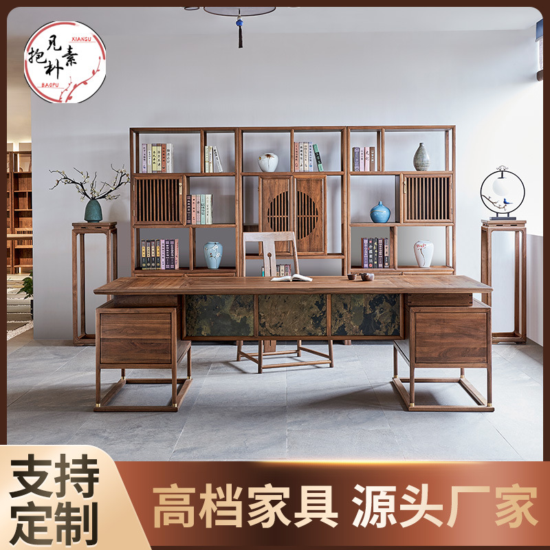 고급 통나무 보스 테이블 조합 북미 검은 호두 고품질 현대 작업대 확장 단단한 나무 책상스토어 가기