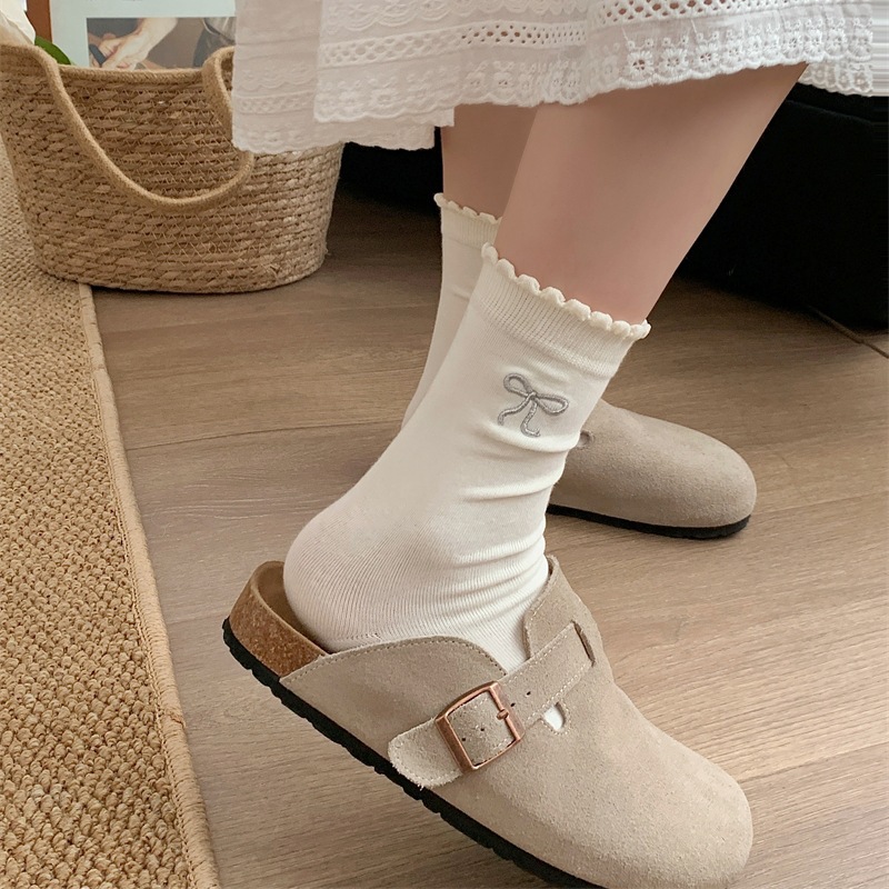 실버 자수 활 레이스 양말 여성 한국 실버 통기성 면 양말 양말 흑백 회색 여성 양말스토어 가기