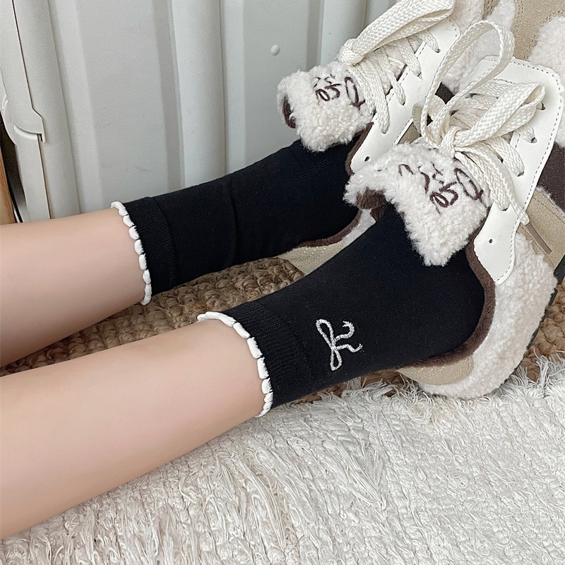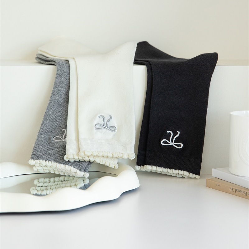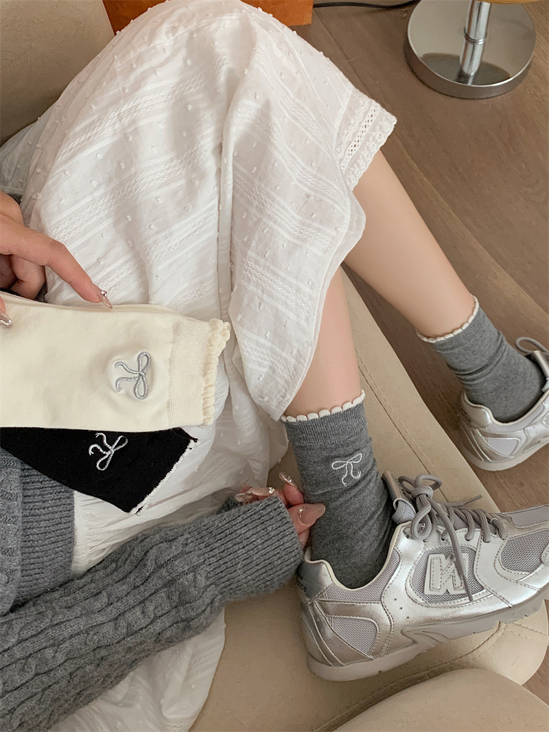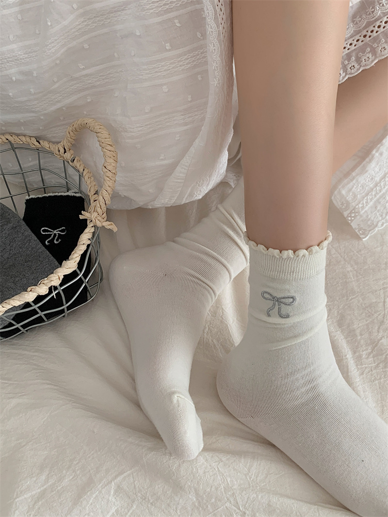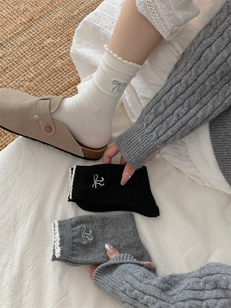 실버 자수 활 레이스 양말 여성 한국 실버 통기성 면 양말 양말 흑백 회색 여성 양말