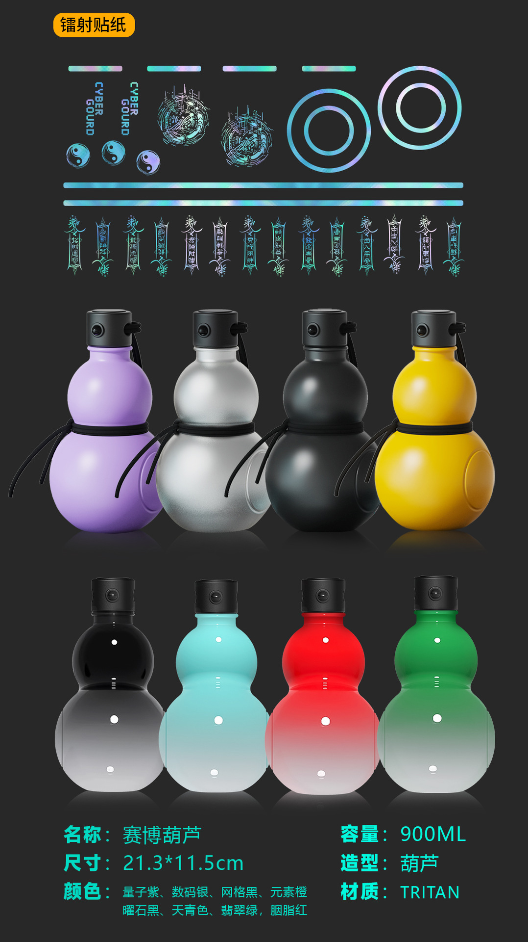 조롱박 물컵 900ml 인터넷 연예인 인기 스포츠 조롱박 주전자는 온수 트라이탄 소재 사이버 조롱박을 담을 수 있습니다