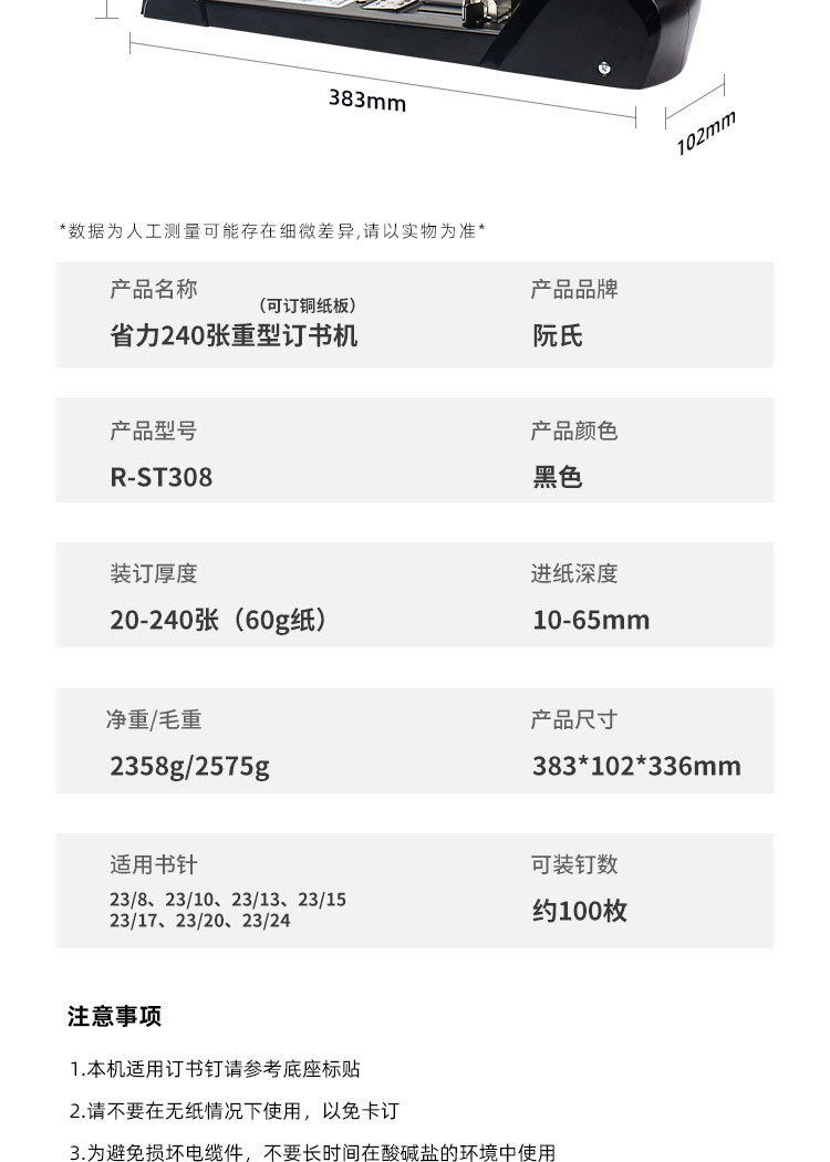 Nguyen Thi 노동 절약 스테이플러 대형 R-ST308 240 페이지 두꺼운 책 바인딩 머신 다기능 스테이플러