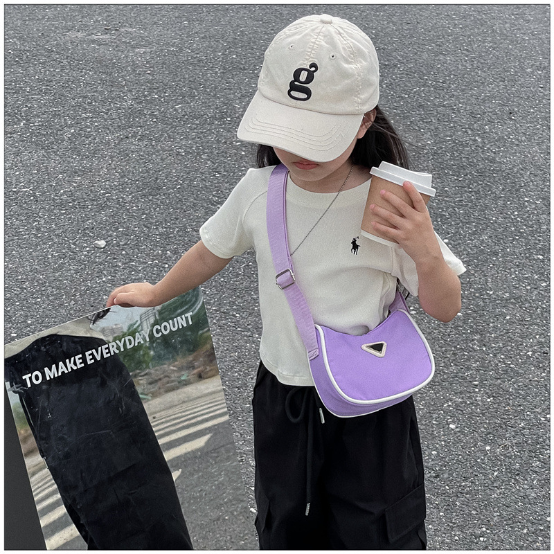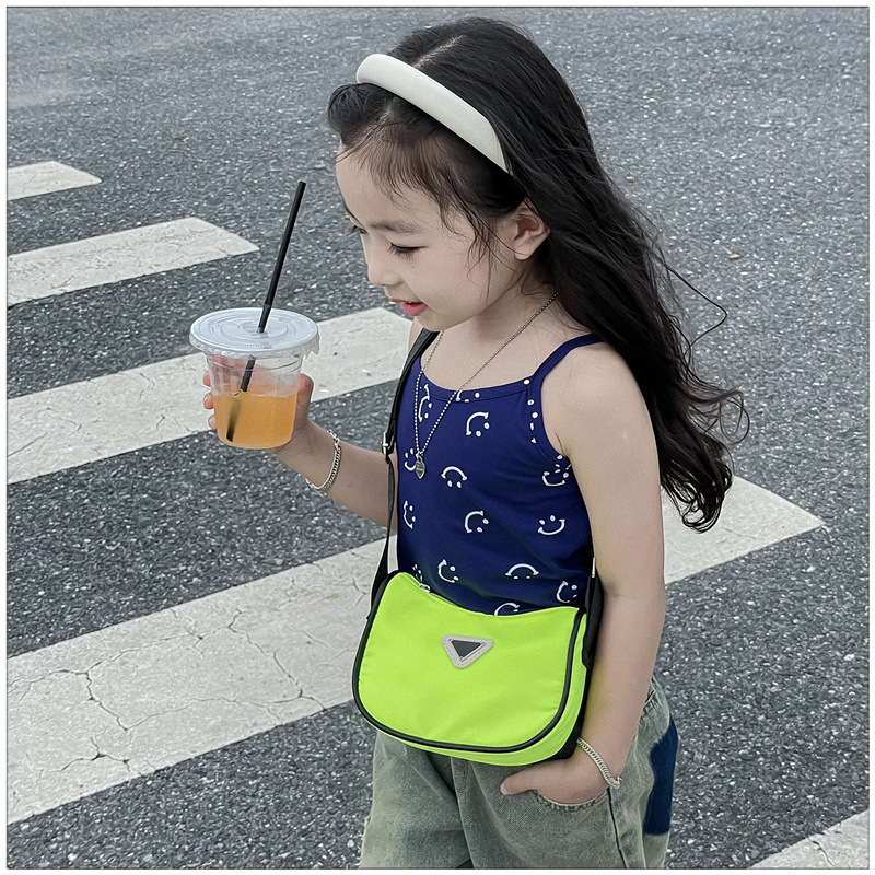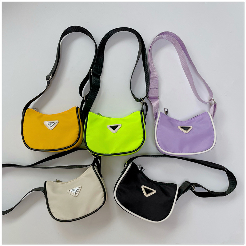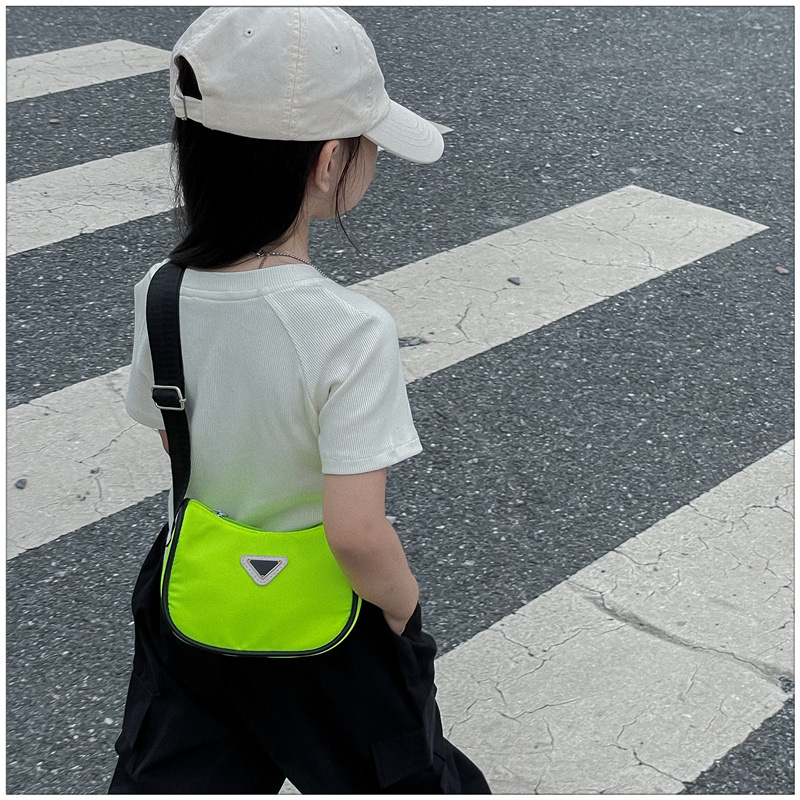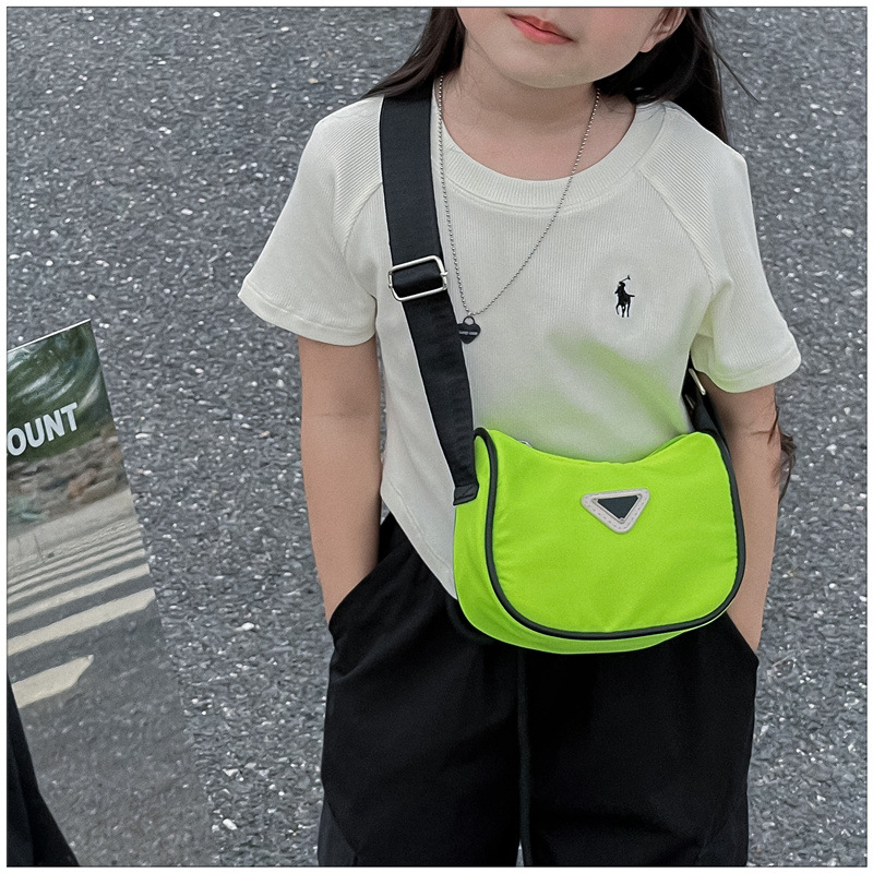 2024 새로운 어린이 가방 패션 소년과 소녀 어깨 크로스 바디 백 나일론 천 방수 언더암 가방 대비 컬러 코인 지갑스토어 가기