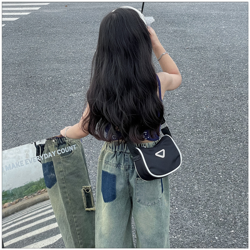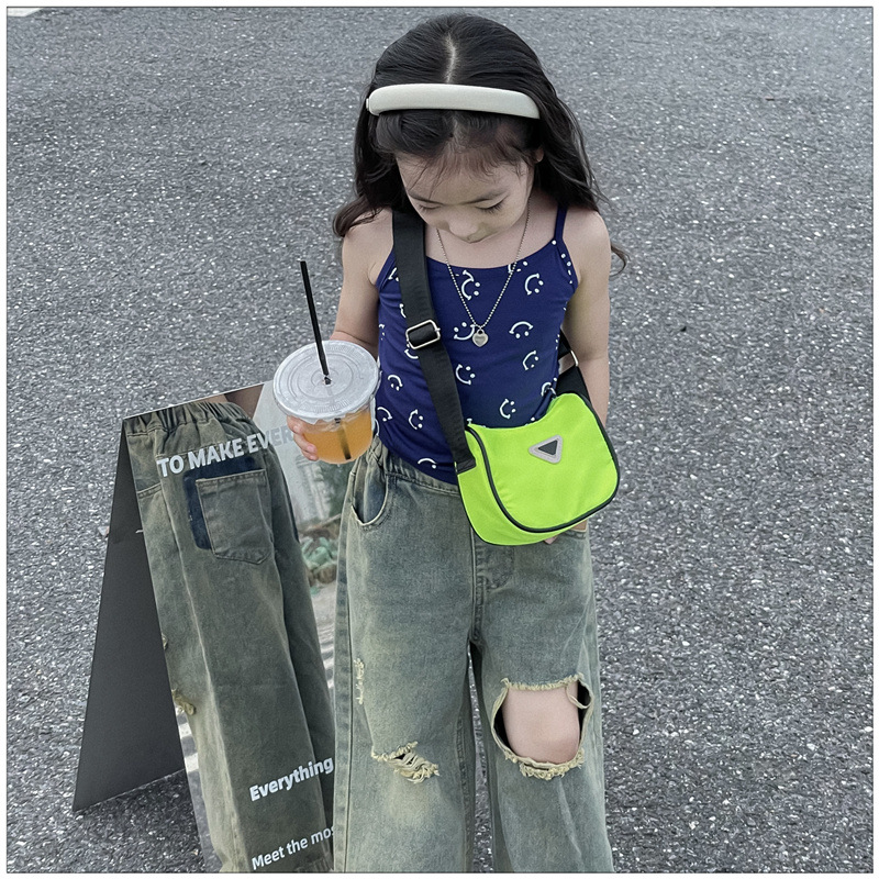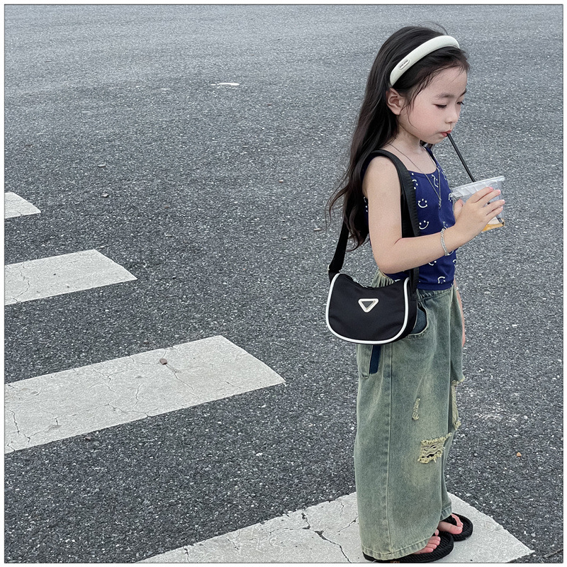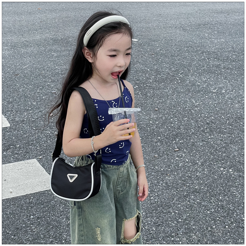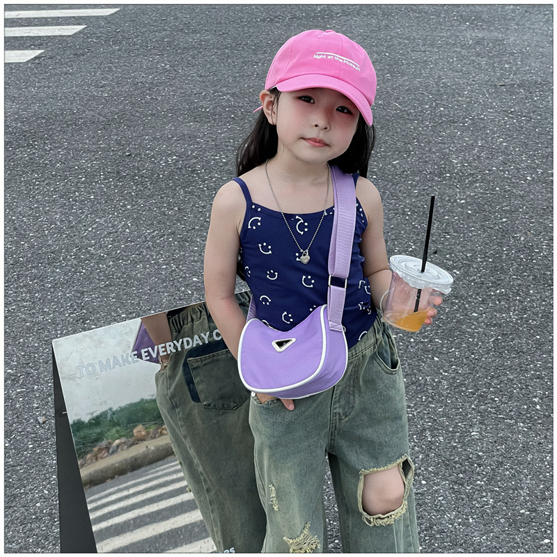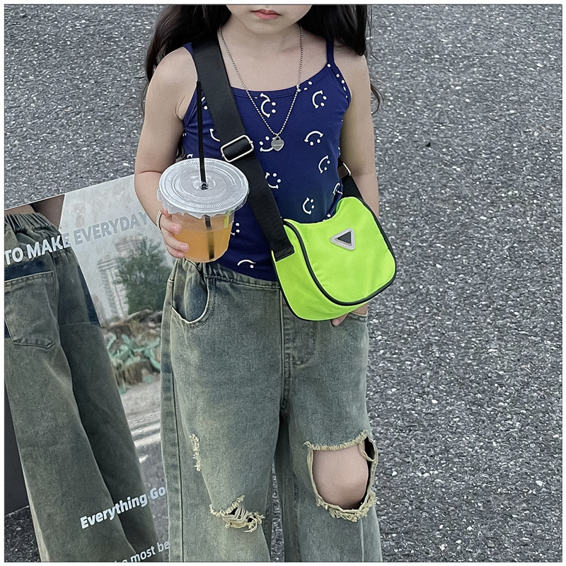 2024 새로운 어린이 가방 패션 소년과 소녀 어깨 크로스 바디 백 나일론 천 방수 언더암 가방 대비 컬러 코인 지갑스토어 가기