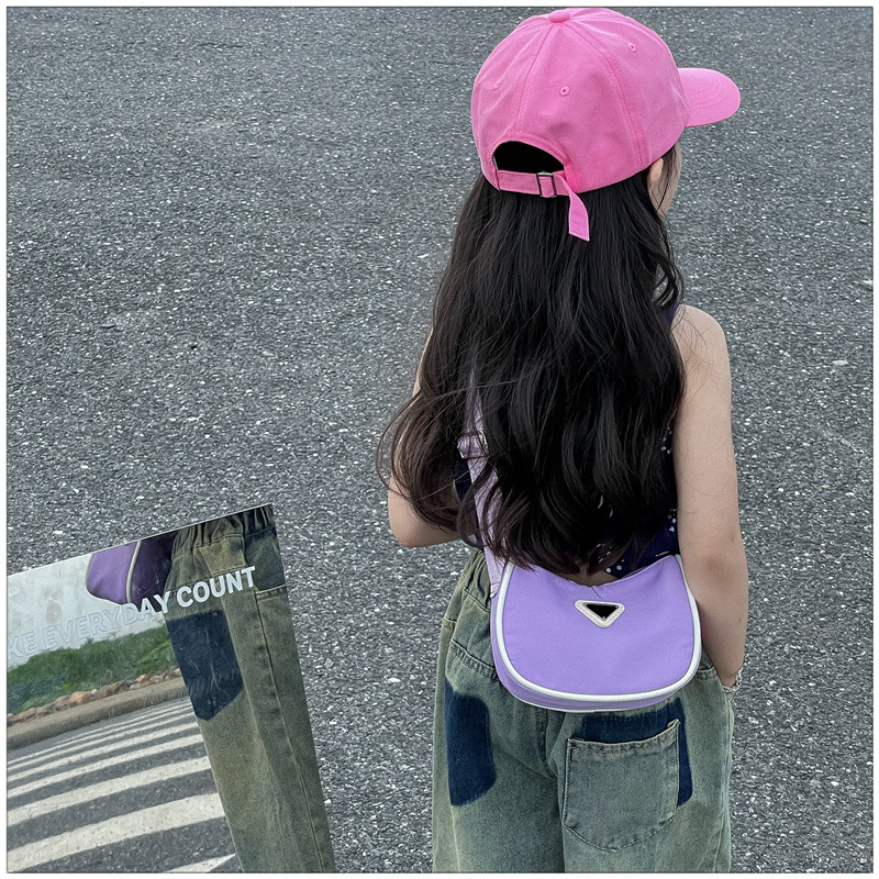 2024 새로운 어린이 가방 패션 소년과 소녀 어깨 크로스 바디 백 나일론 천 방수 언더암 가방 대비 컬러 코인 지갑