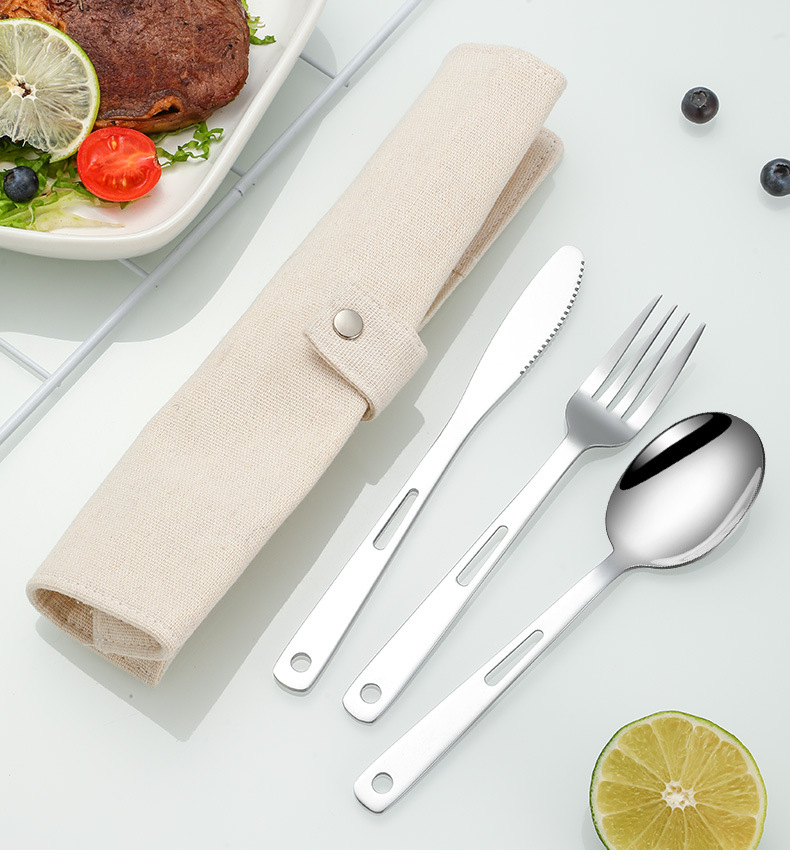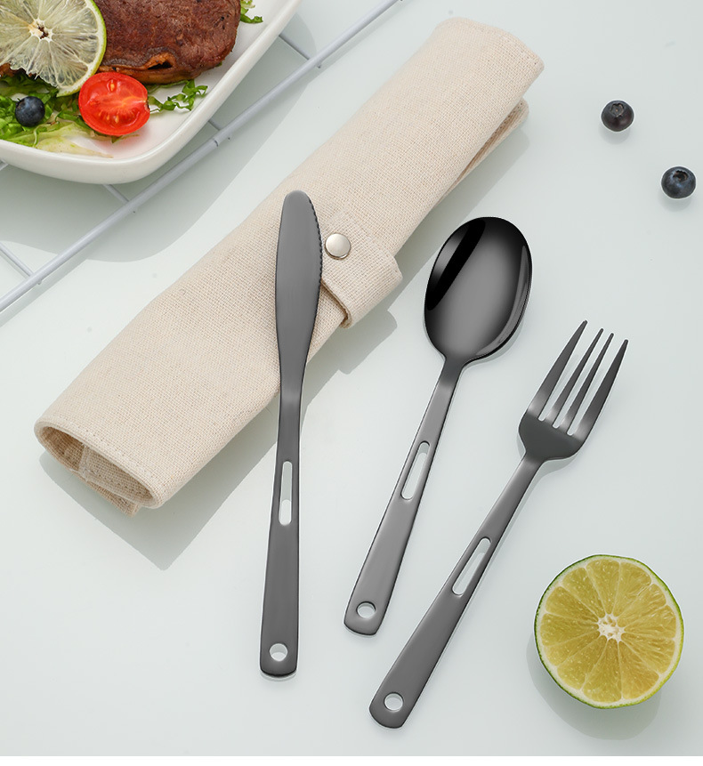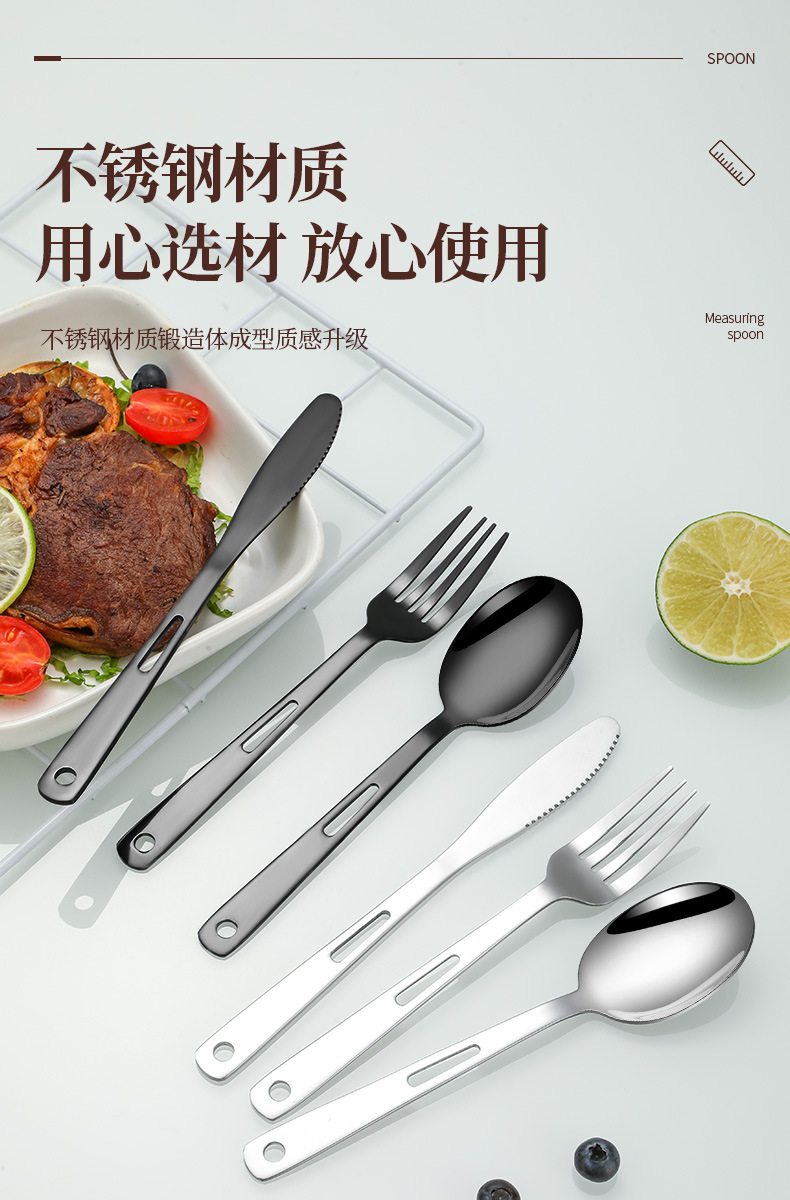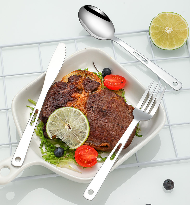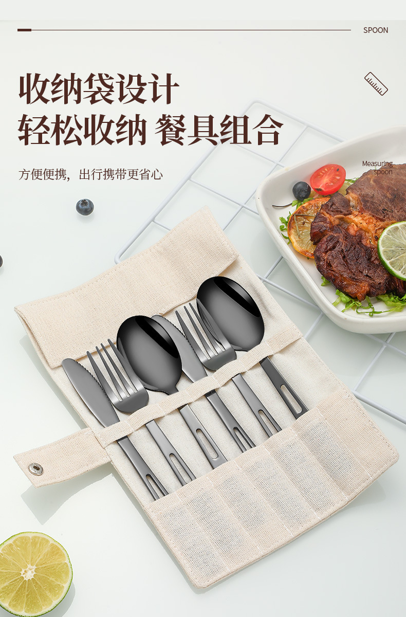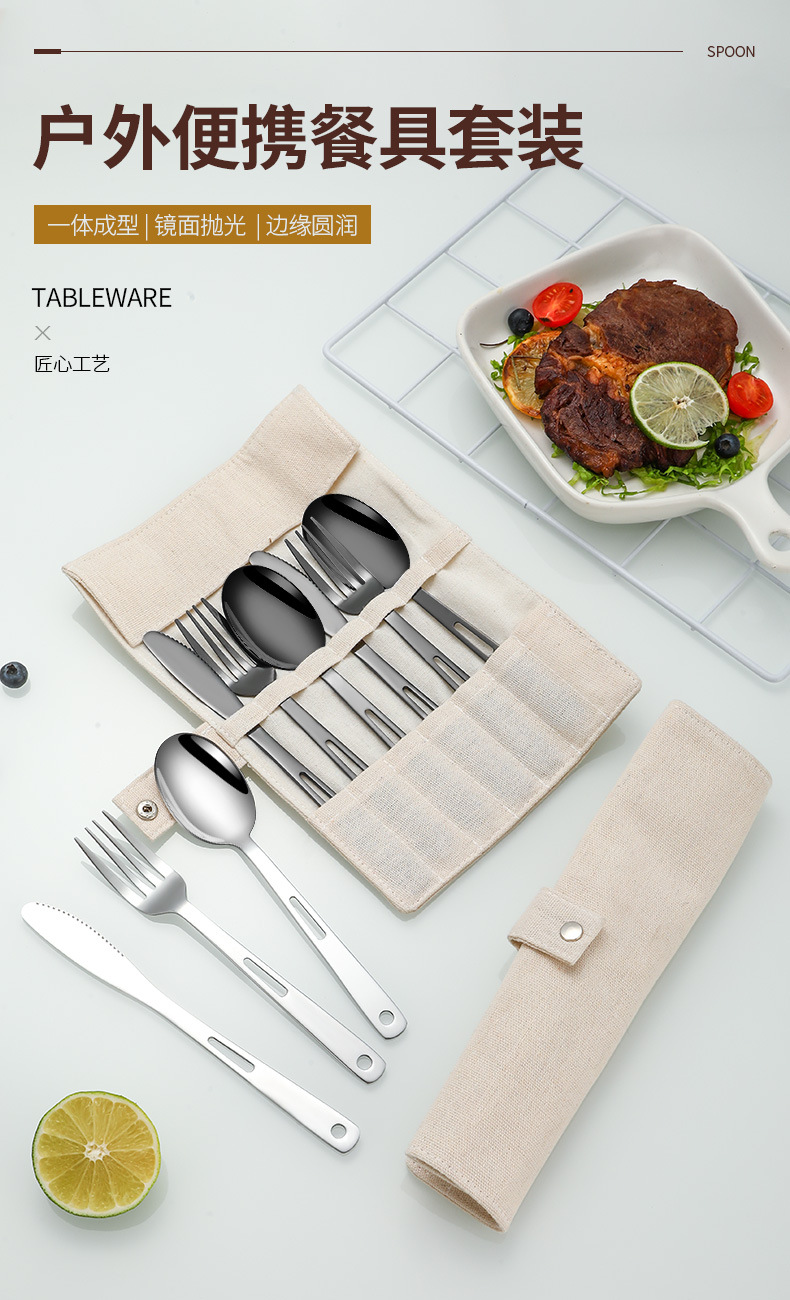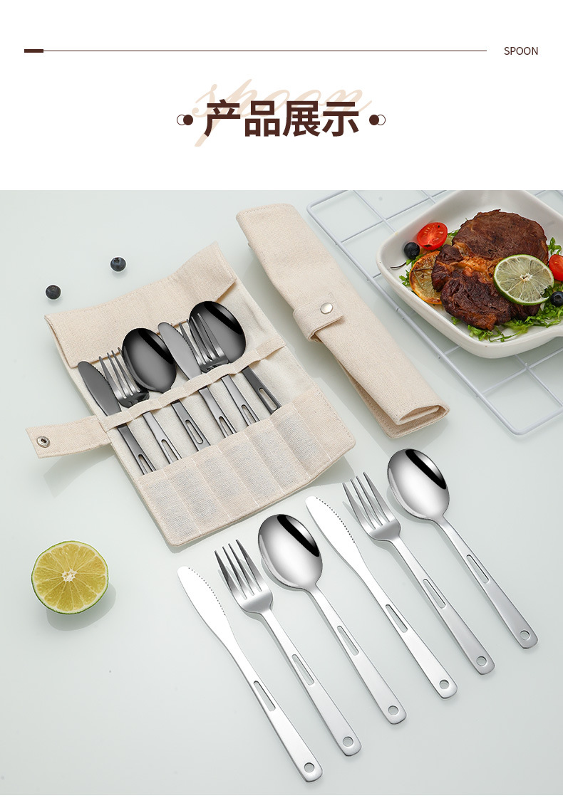 국경 간 스테인레스 스틸 야외 칼, 포크 및 스푼 7 피스 세트 스팟 스크롤 스타일 보관 가방 캠핑 캠핑 휴대용 식기스토어 가기