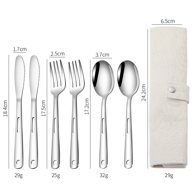 국경 간 스테인레스 스틸 야외 칼, 포크 및 스푼 7 피스 세트 스팟 스크롤 스타일 보관 가방 캠핑 캠핑 휴대용 식기