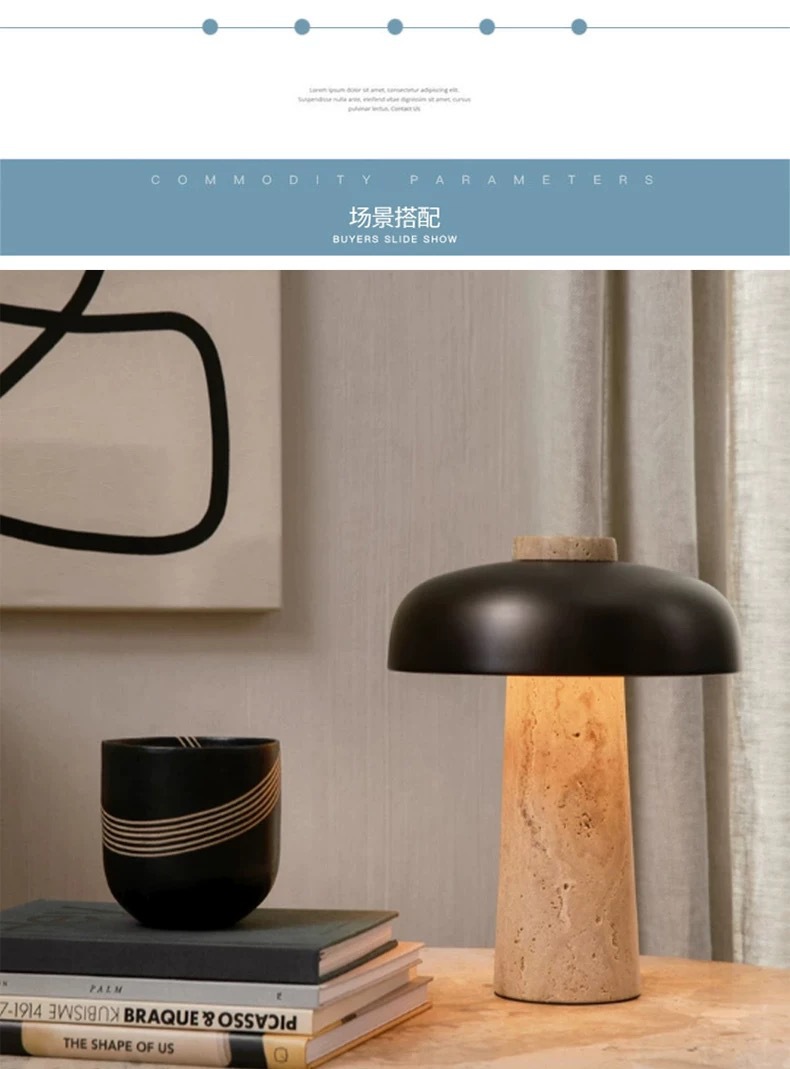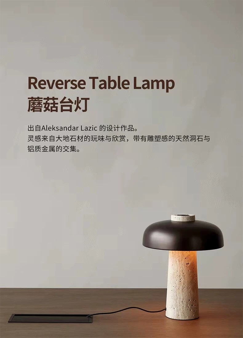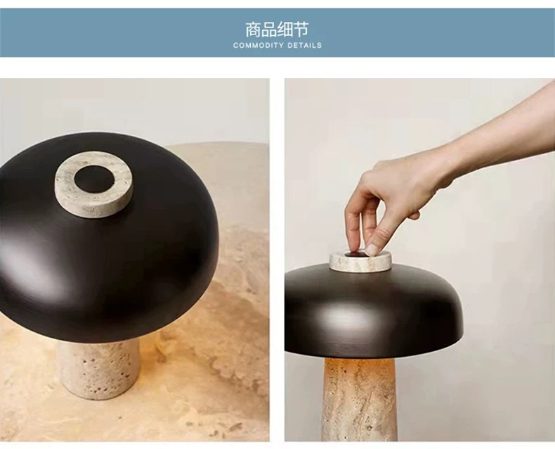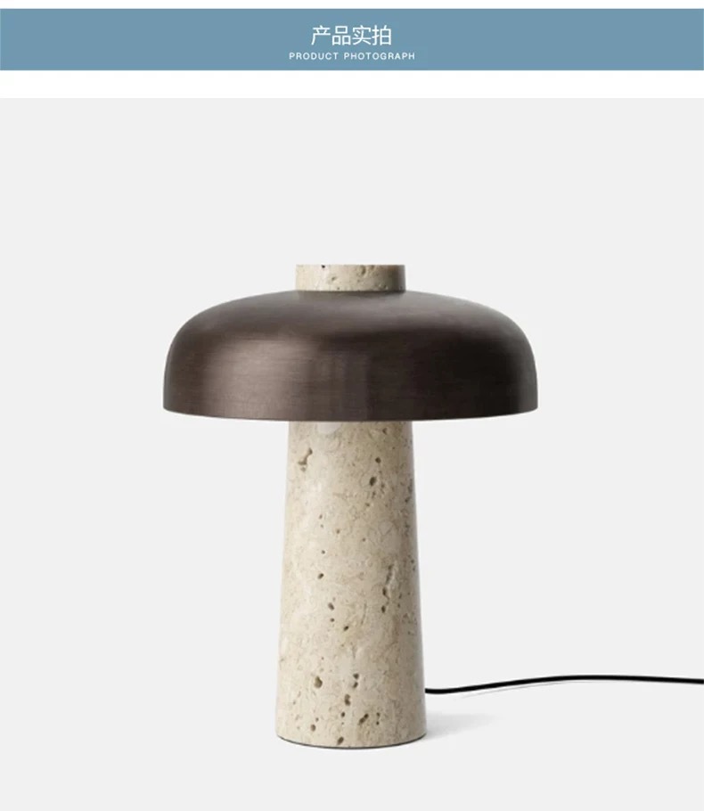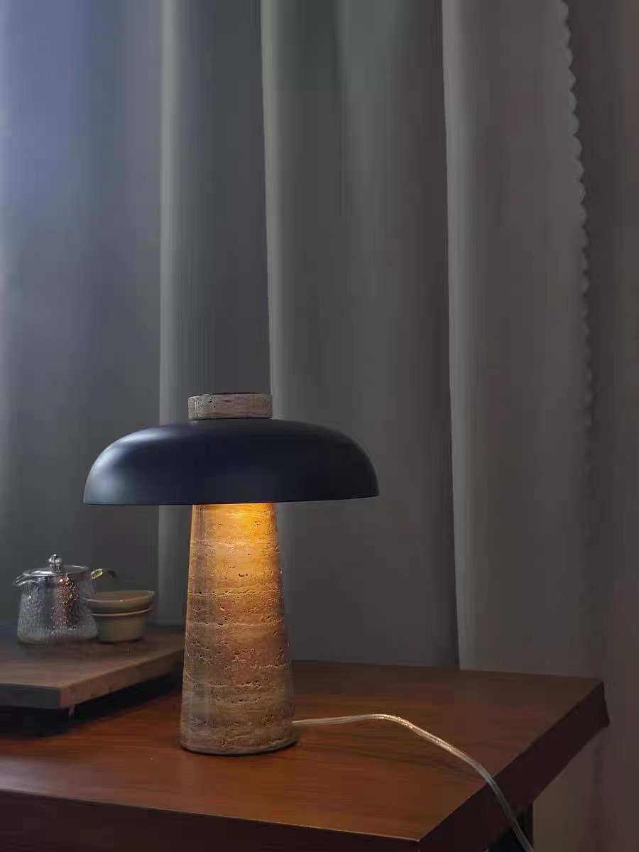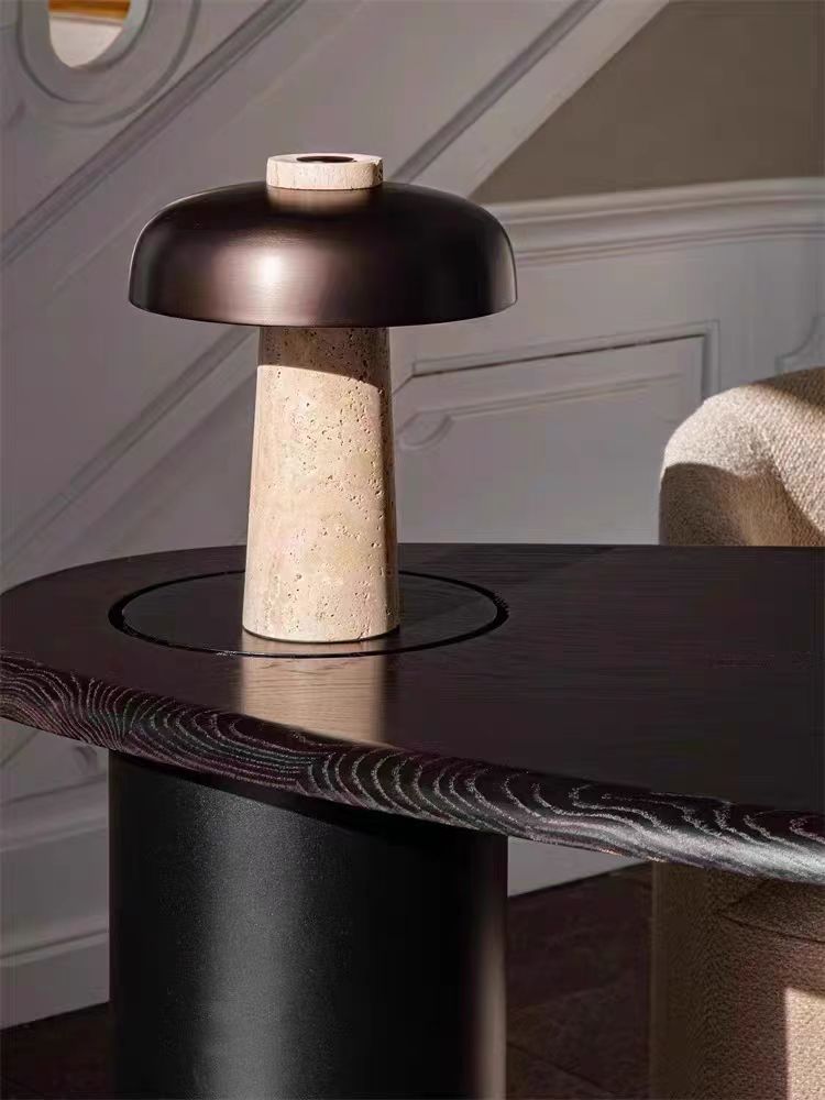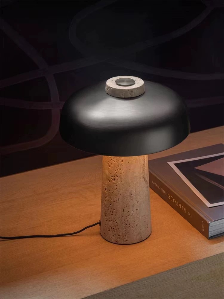 北欧丹麦黄洞石蘑菇床头灯书房侘寂风充电触摸创意卧室台灯高级感