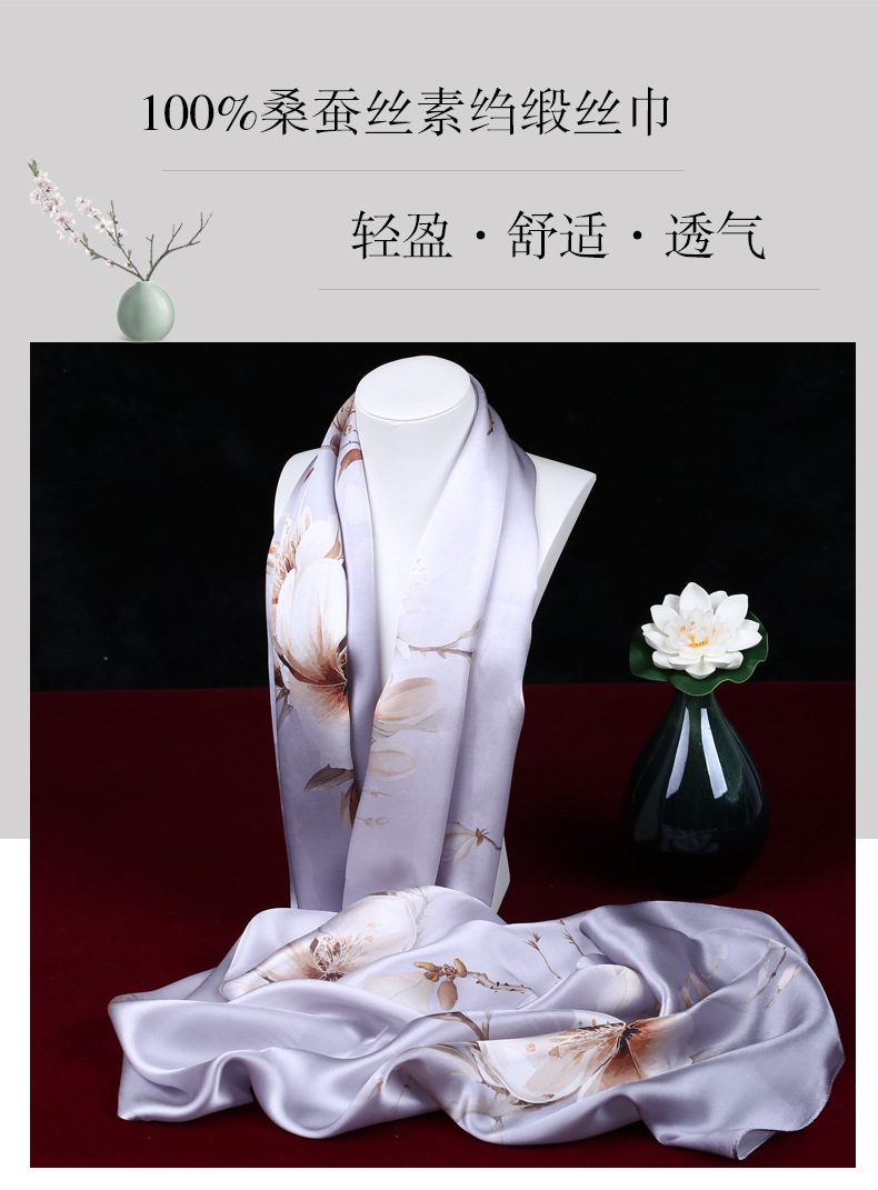 100 뽕나무 실크 스카프 일반 크레이프 새틴 패션 인쇄 목도리 기계 컬링 항주 실크 자체 제작 재고 충분스토어 가기