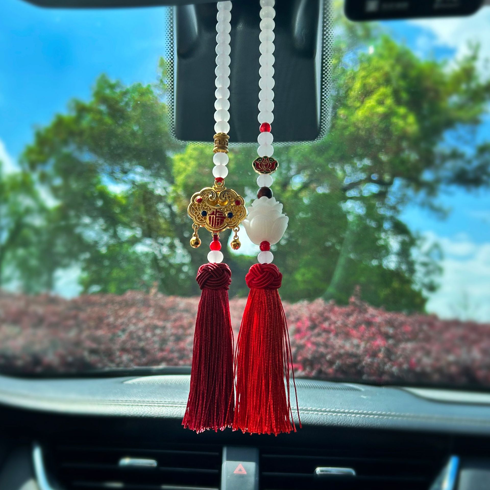 자동차 펜던트 펜던트 연꽃 자동차 매달려 자동차 고급 안전 잠금 백미러 자동차 나무 ruyi 버클 펜던트