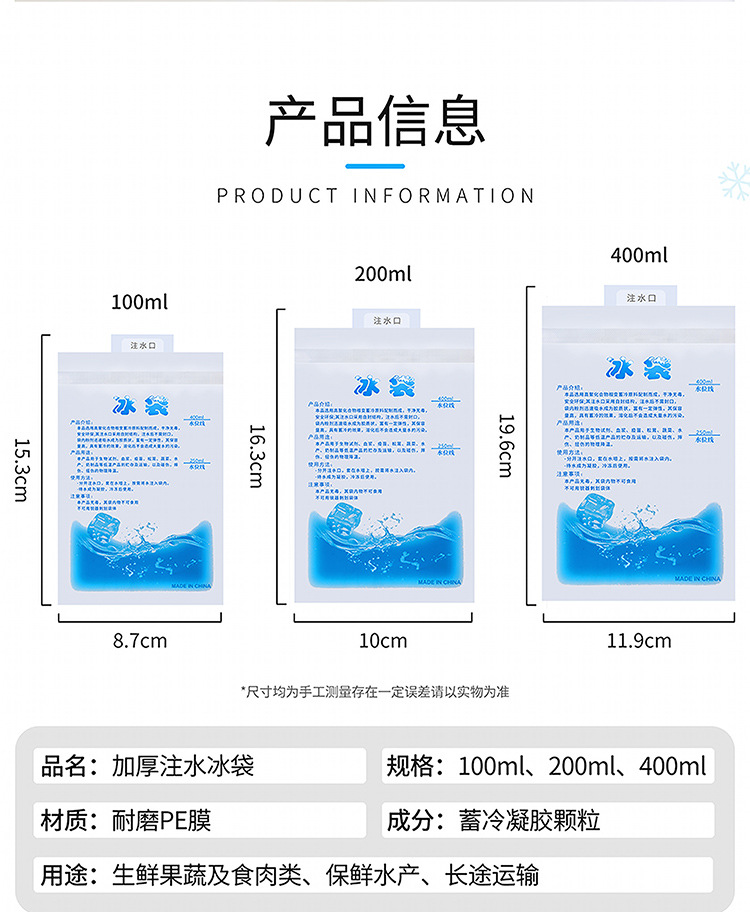 아이스 백 재사용 가능한 음식 신선한 과일 냉장 신선한 냉장 아이스 백 익스프레스 특별 냉동 물 주입 아이스 백