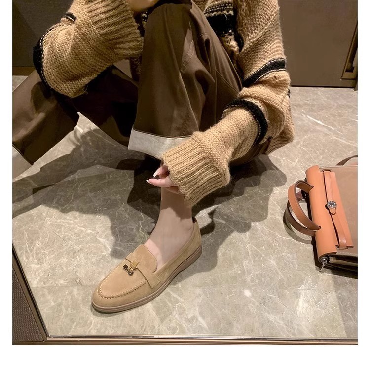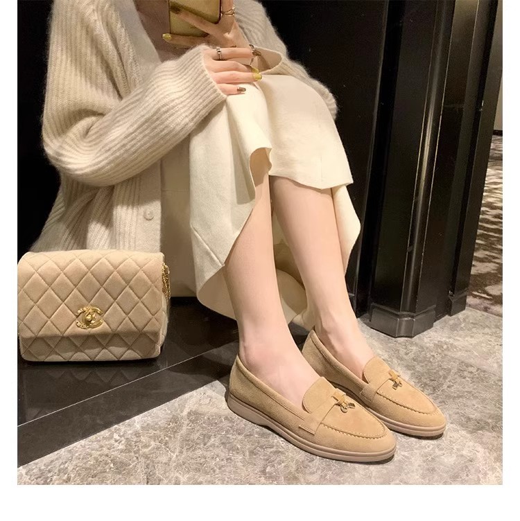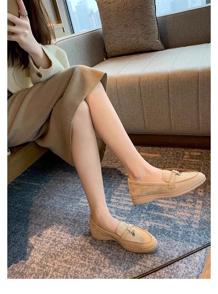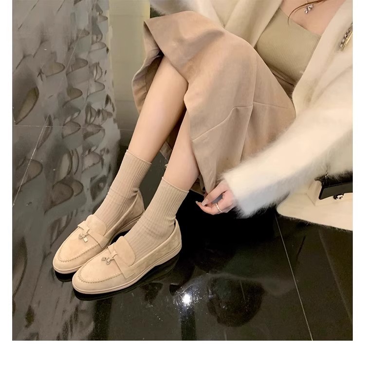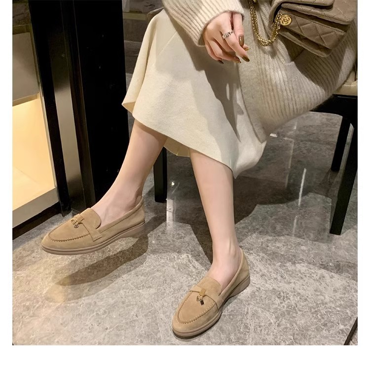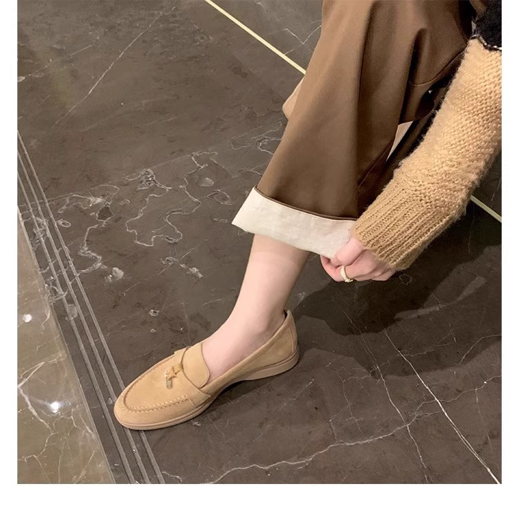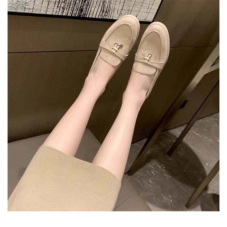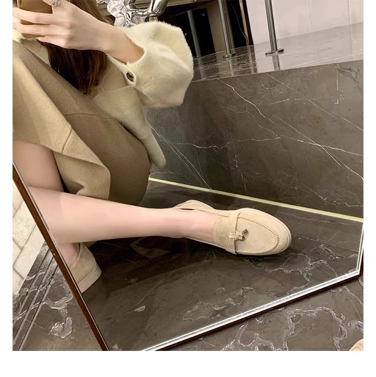 LP 싱글 레이어 신발 여성 2024 영국 스타일 슬립 온 캐주얼 플랫 태슬 버클 올 매치 소프트 완두콩 편안한 로퍼스토어 가기