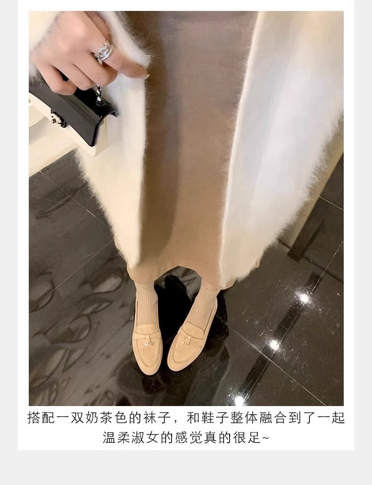LP 싱글 레이어 신발 여성 2024 영국 스타일 슬립 온 캐주얼 플랫 태슬 버클 올 매치 소프트 완두콩 편안한 로퍼