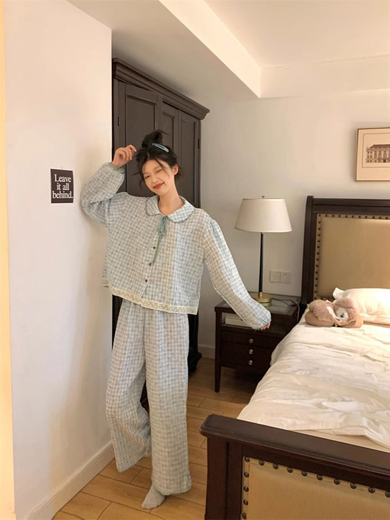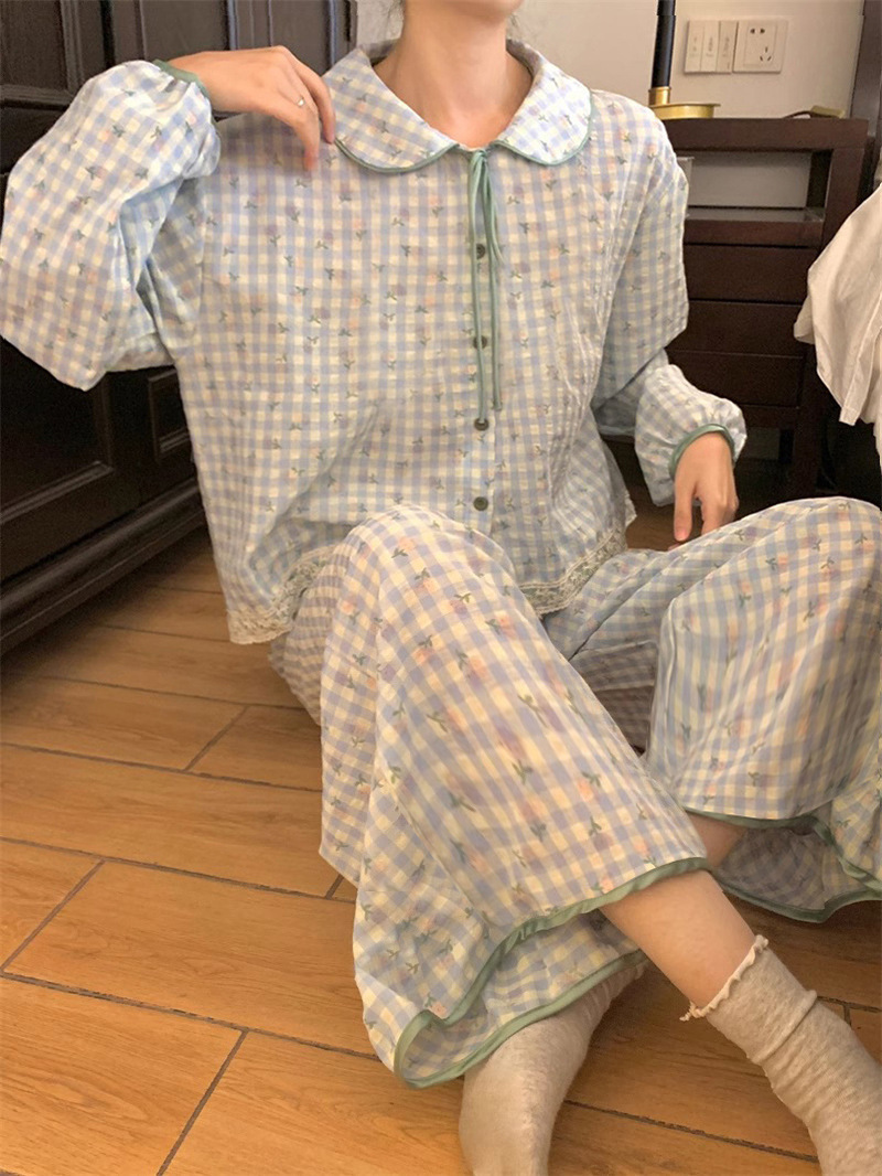 한국 인터넷 연예인 Ins 스타일 꽃 무늬 잠옷 여성 봄과 가을 달콤한 귀여운 학생 긴 소매 세트 홈 옷