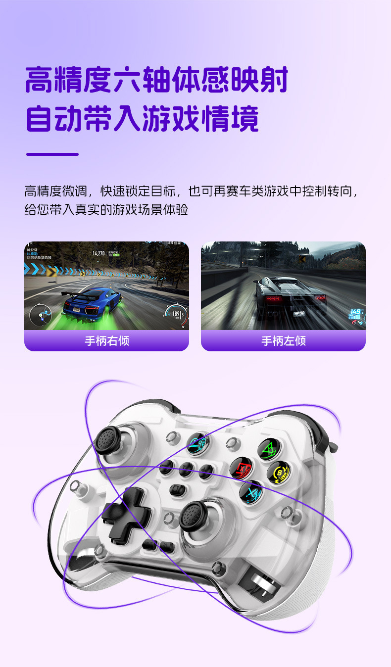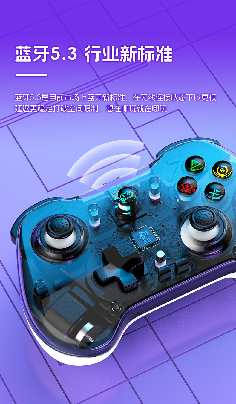 5.无线蓝牙3.0行业新标准,在无线连接状态下以更低延迟更稳定打破空间限制,想在哪玩就在哪玩。