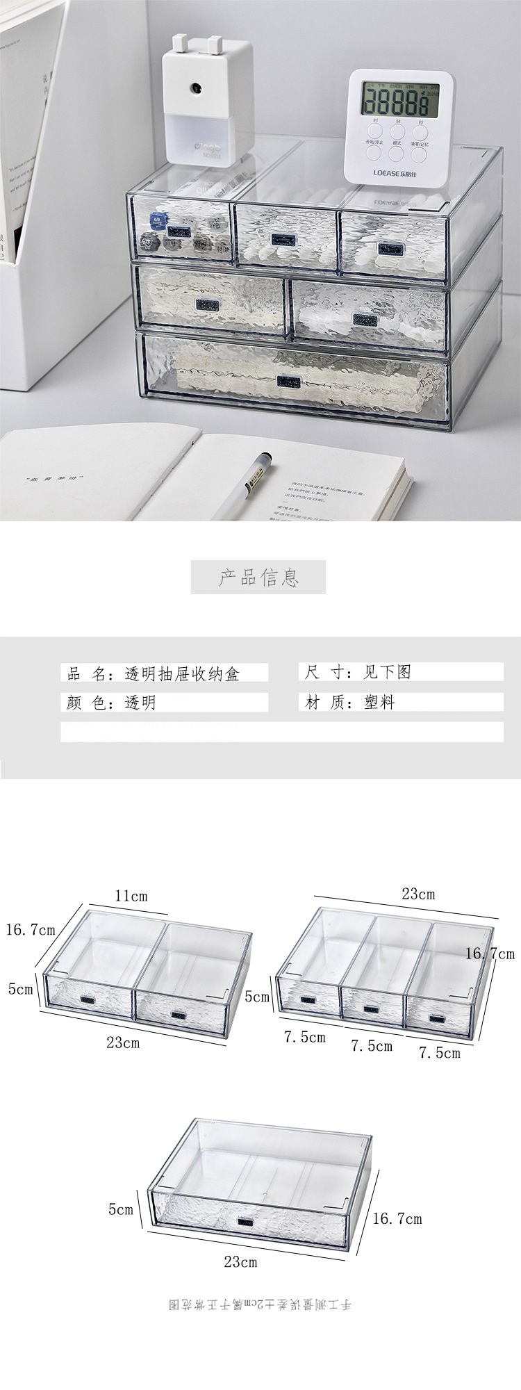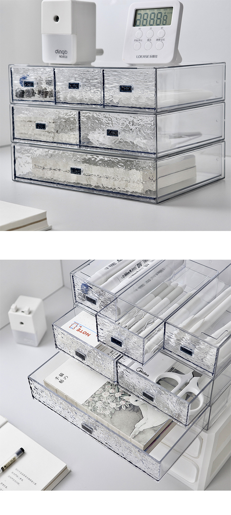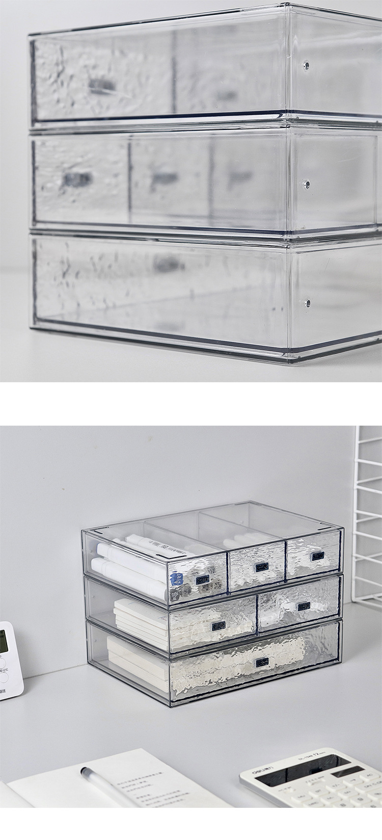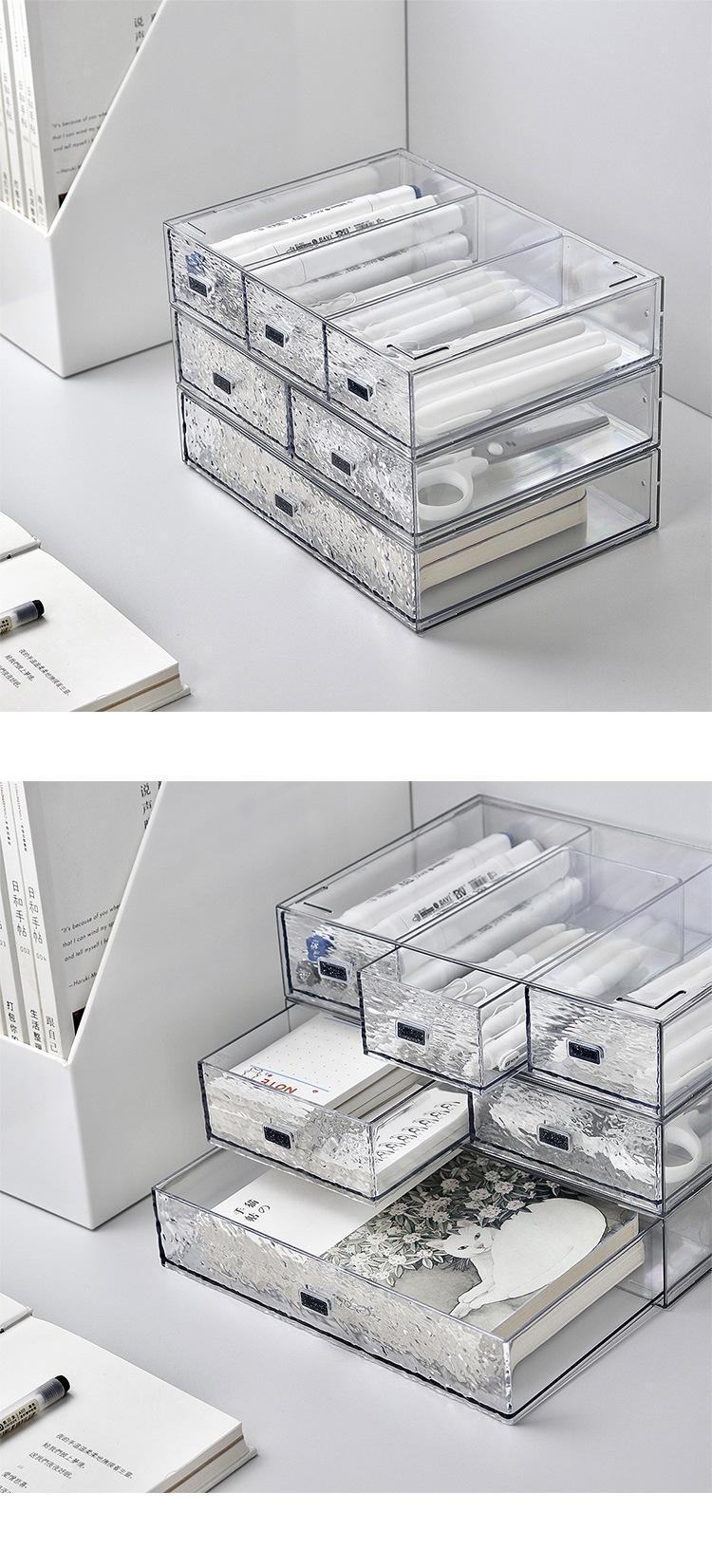 투명한 물 골판지 서랍 유형 저장 상자 학생 기숙사 책상 사무실 마크 펜 손 계정 노트북 보관