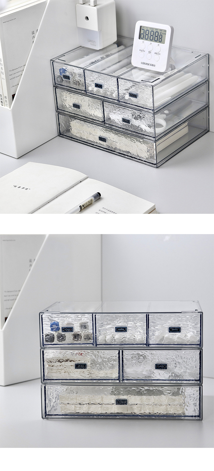 투명한 물 골판지 서랍 유형 저장 상자 학생 기숙사 책상 사무실 마크 펜 손 계정 노트북 보관스토어 가기