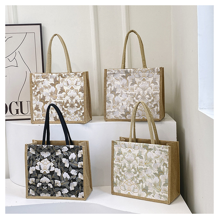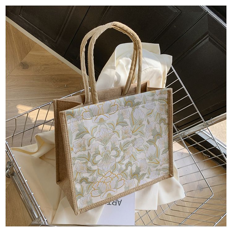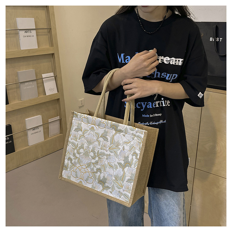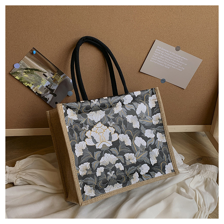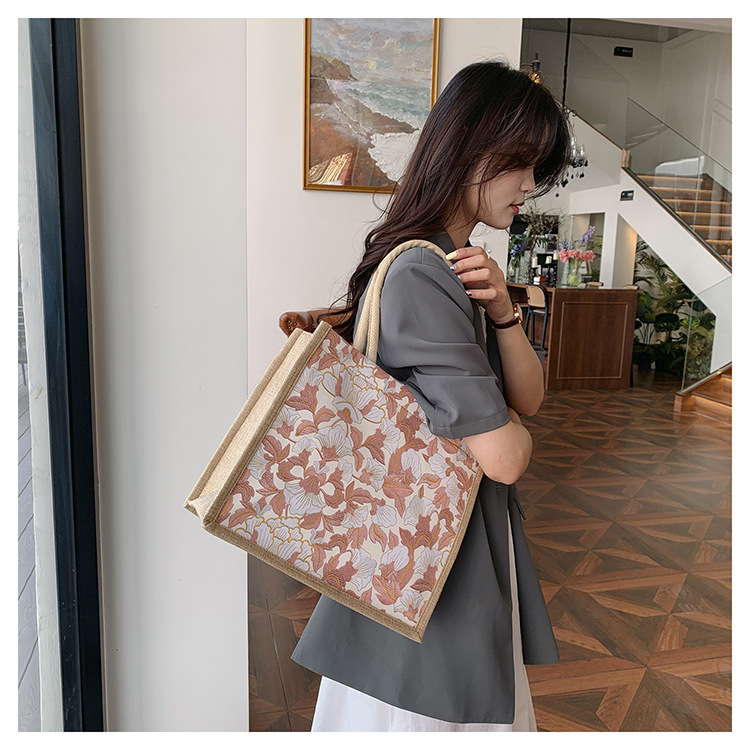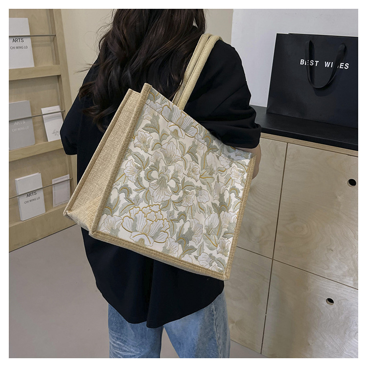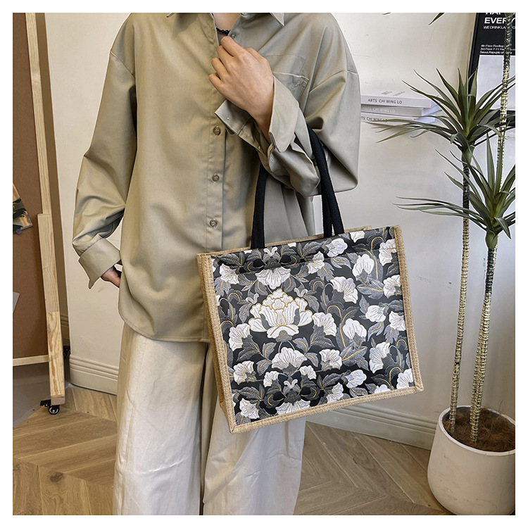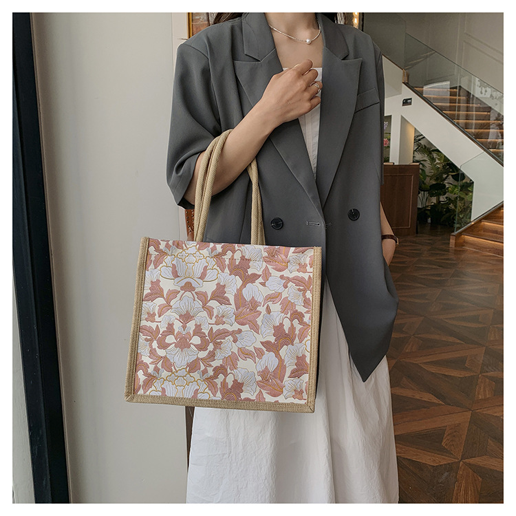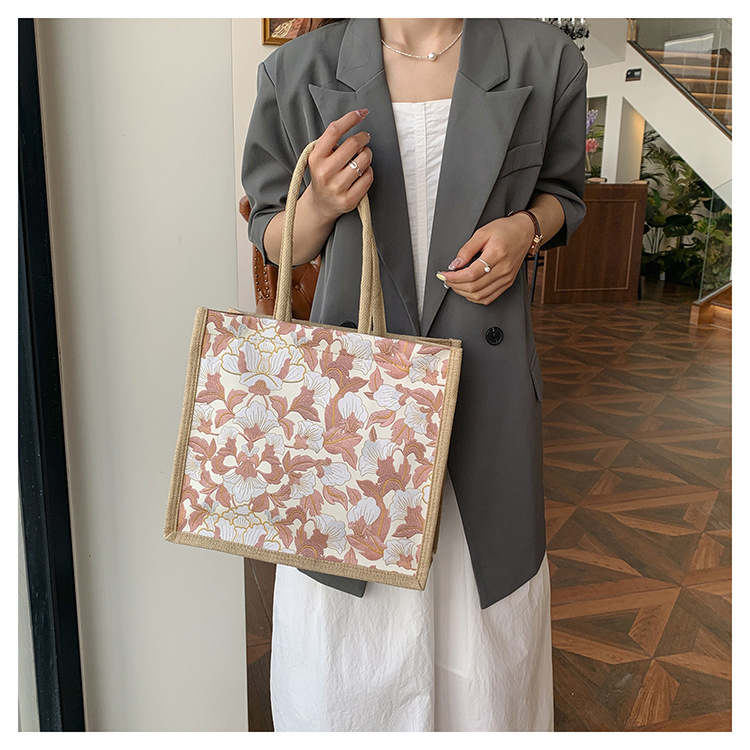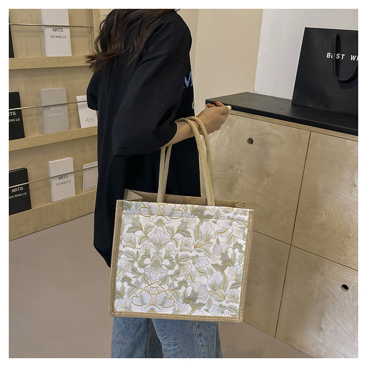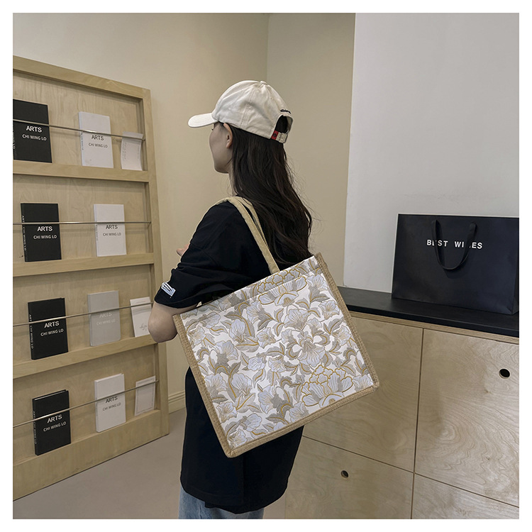 한국식 예술 여성 가방 새로운 유행 높은 색상 가치 대용량 면 및 리넨 유행 작업 통근 핸드백 런치 백스토어 가기