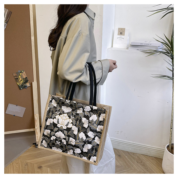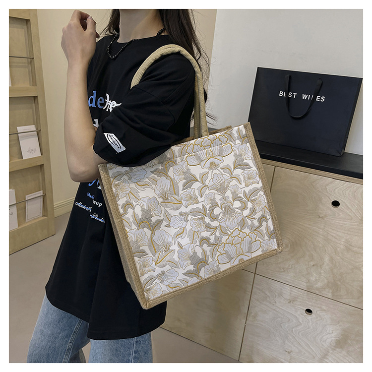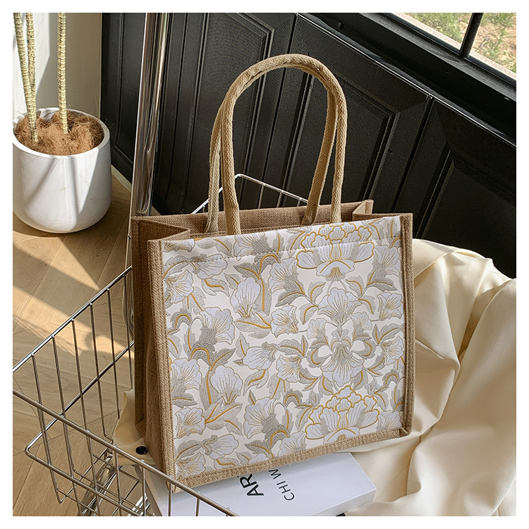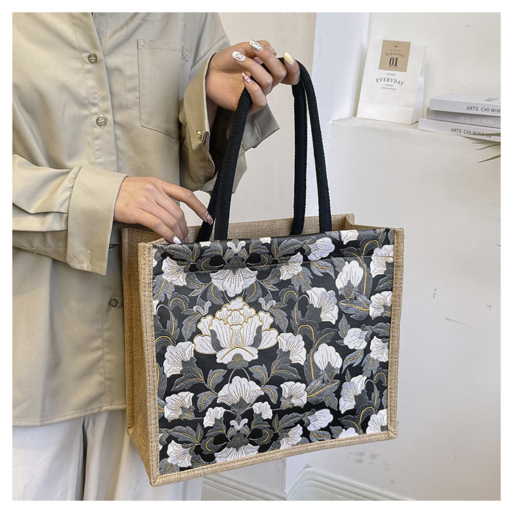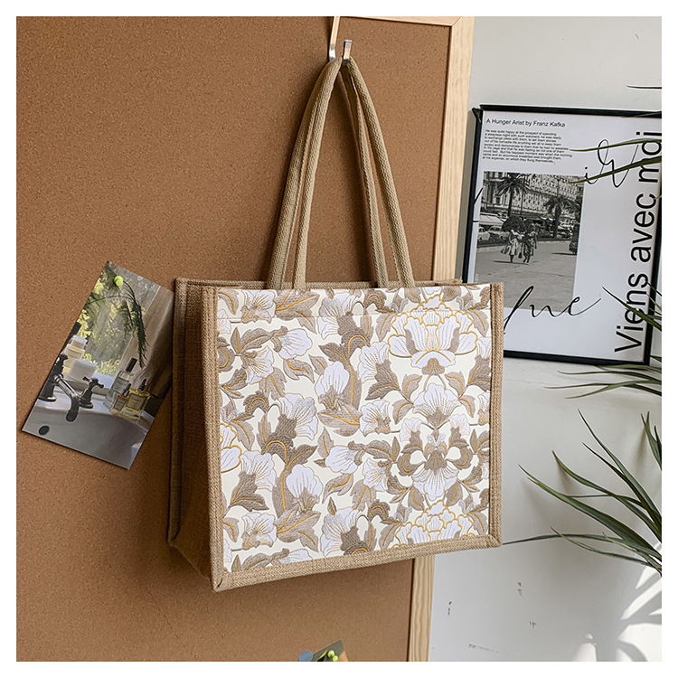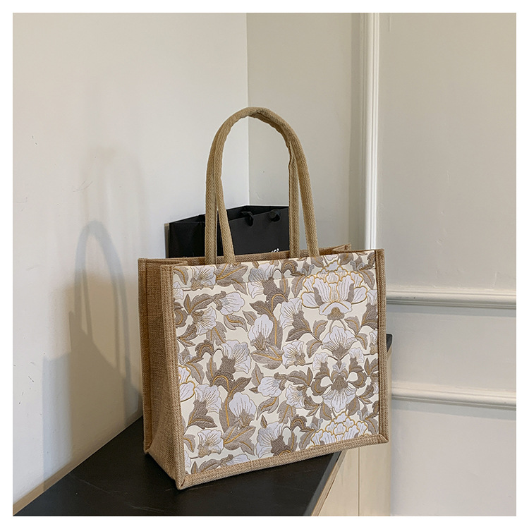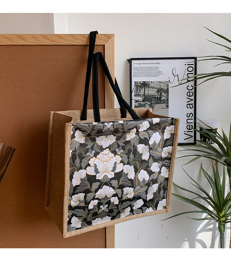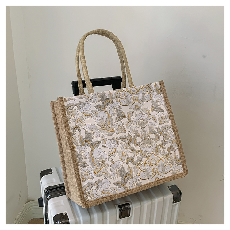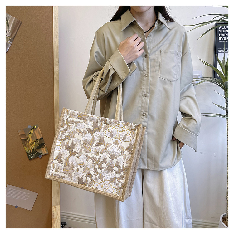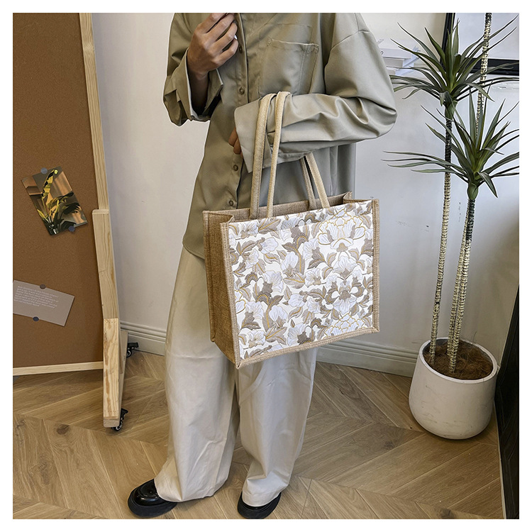 한국식 예술 여성 가방 새로운 유행 높은 색상 가치 대용량 면 및 리넨 유행 작업 통근 핸드백 런치 백스토어 가기