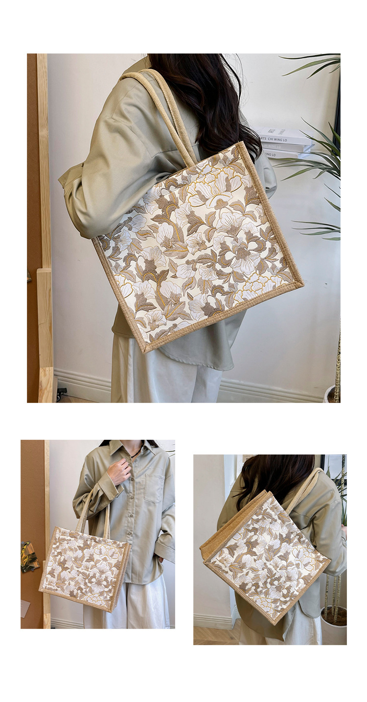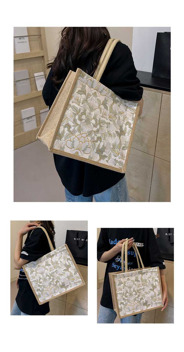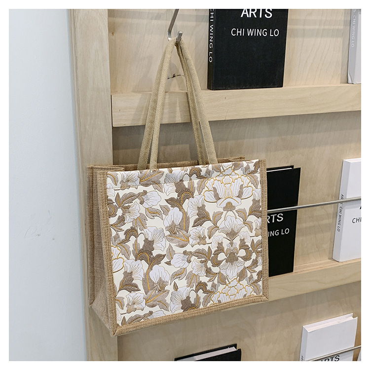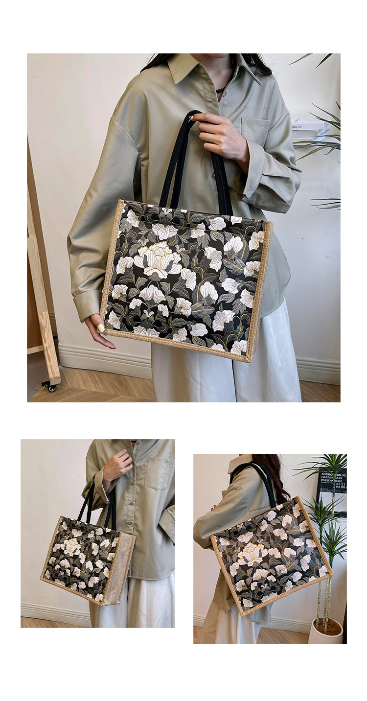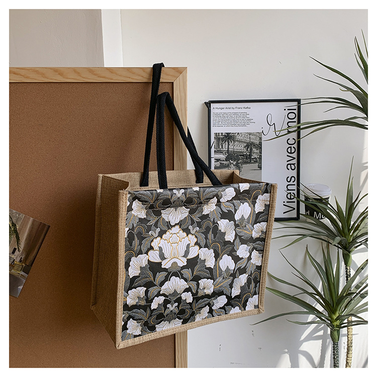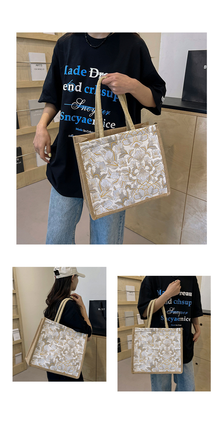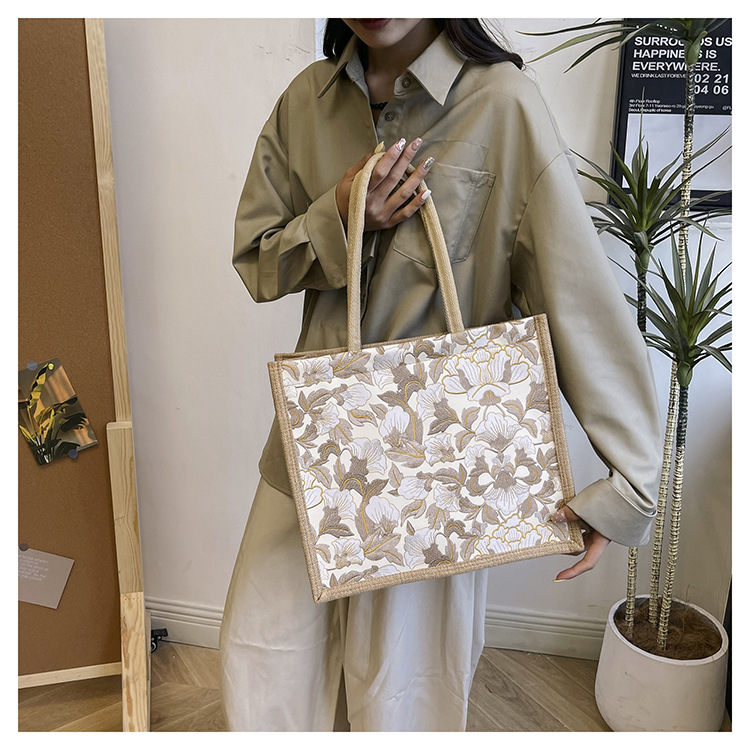 한국식 예술 여성 가방 새로운 유행 높은 색상 가치 대용량 면 및 리넨 유행 작업 통근 핸드백 런치 백스토어 가기