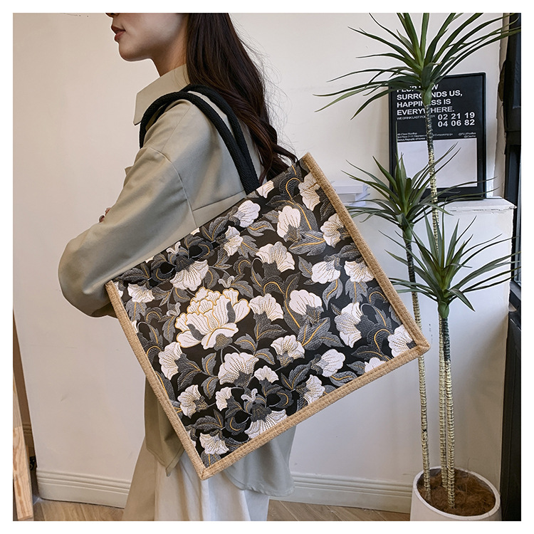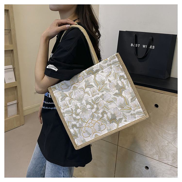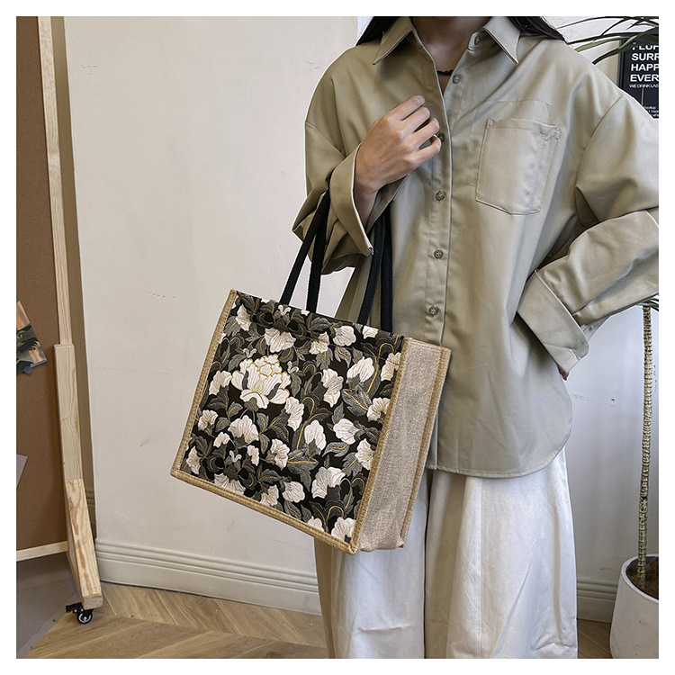 한국식 예술 여성 가방 새로운 유행 높은 색상 가치 대용량 면 및 리넨 유행 작업 통근 핸드백 런치 백