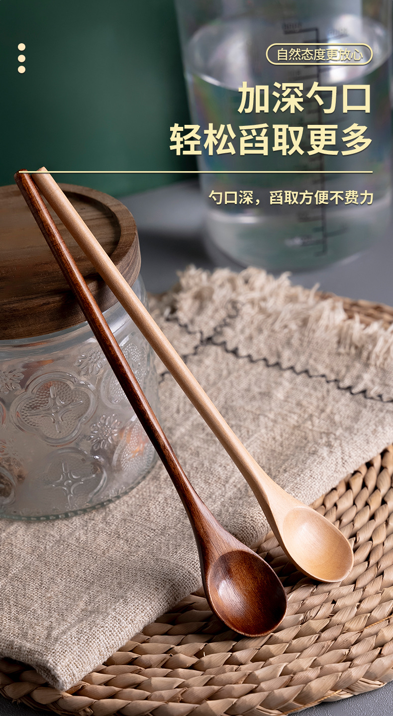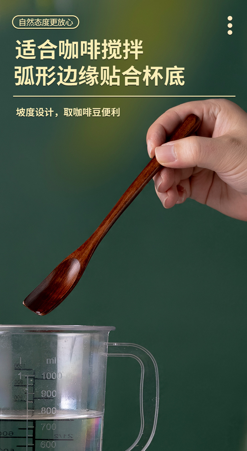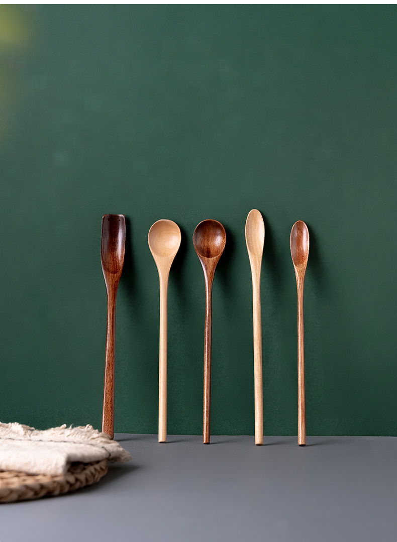 긴 손잡이 nanmu 커피 숟가락 가정용 우유 차 혼합 숟가락 설탕 숟가락 나무 커피 콩 숟가락 공장 도매 차 숟가락