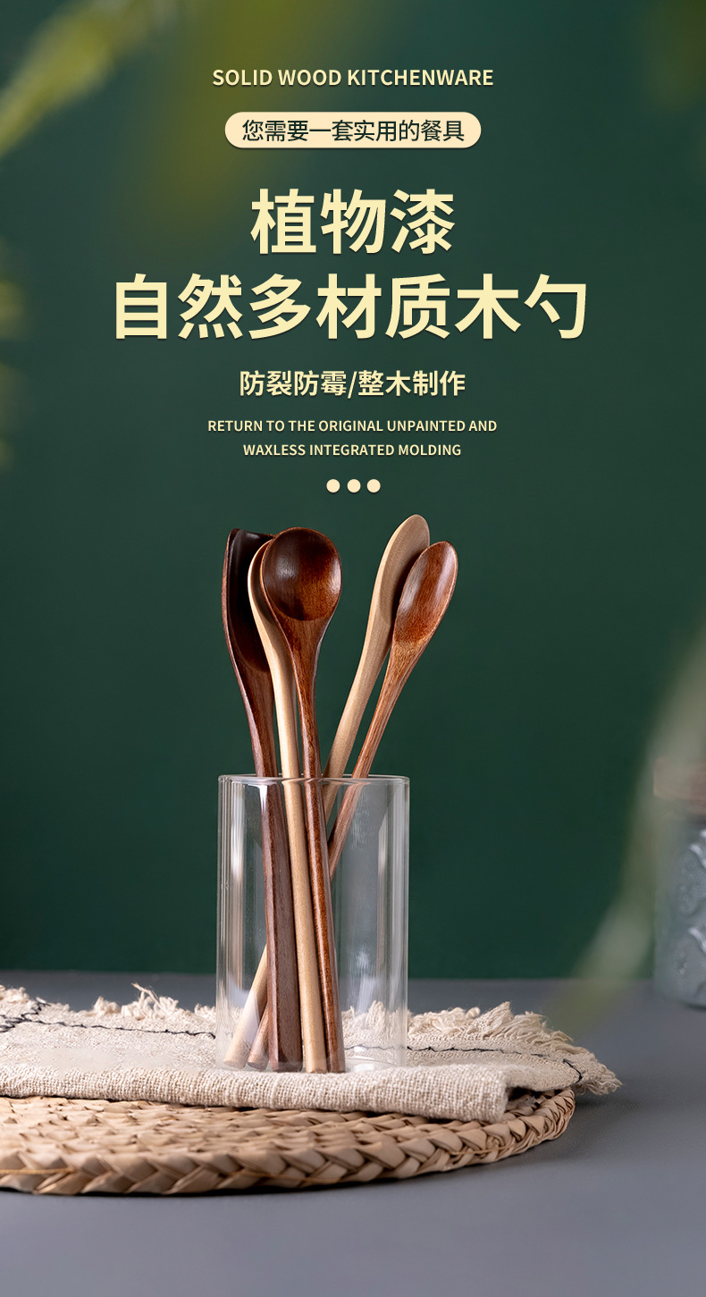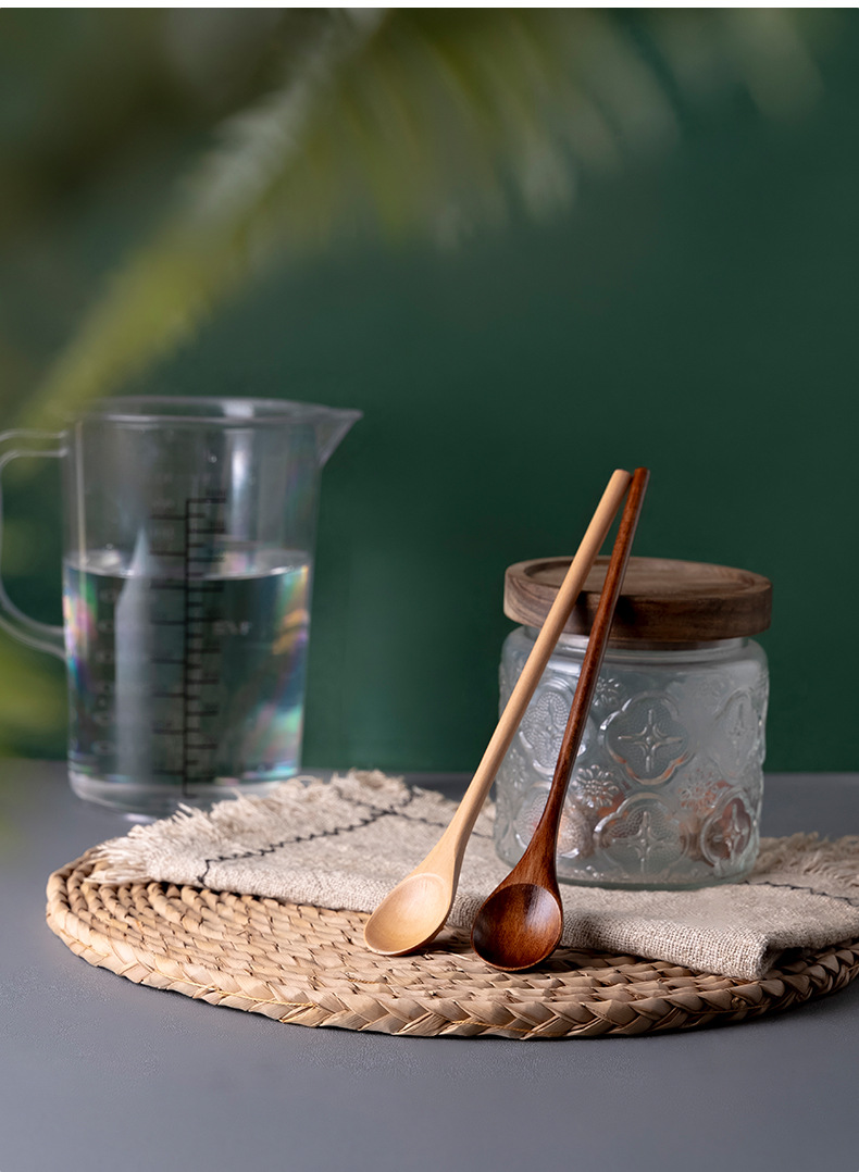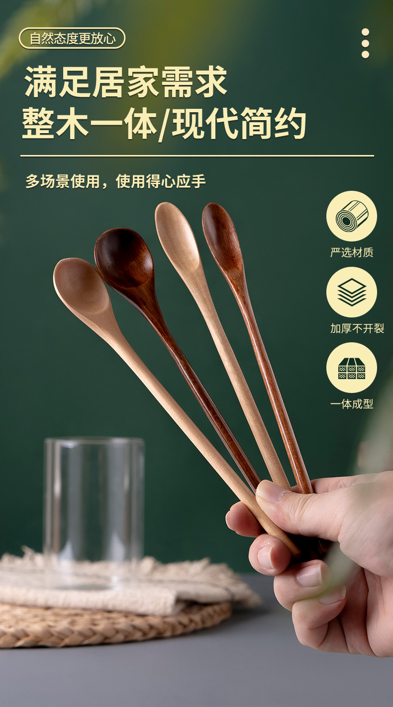 긴 손잡이 nanmu 커피 숟가락 가정용 우유 차 혼합 숟가락 설탕 숟가락 나무 커피 콩 숟가락 공장 도매 차 숟가락
