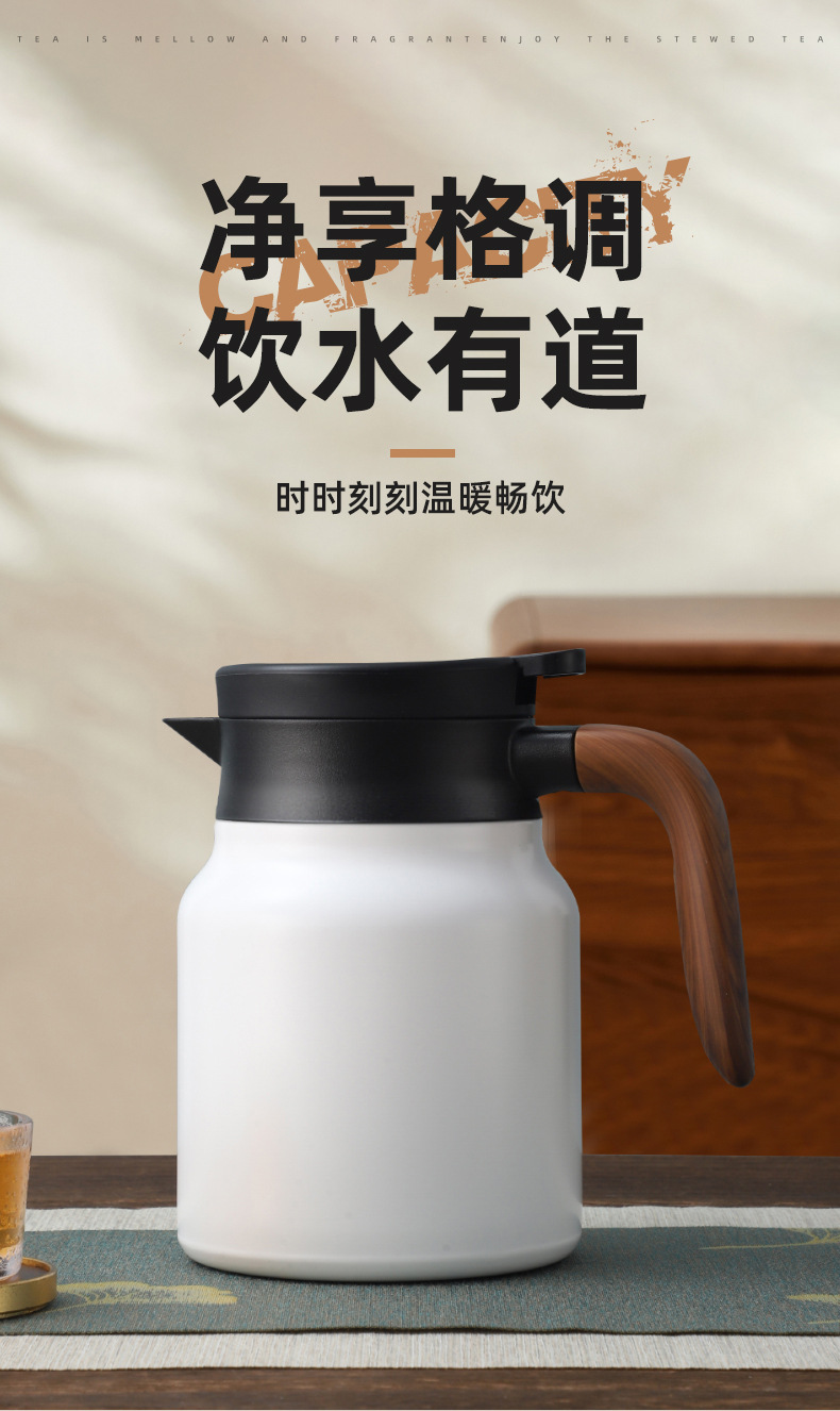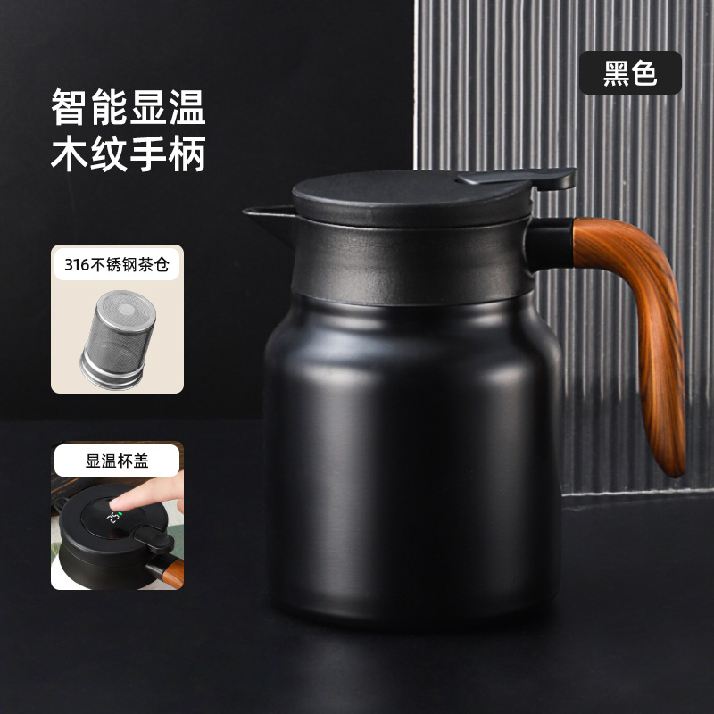 새로운 나무 손잡이 스튜 주전자 나무 곡물 손잡이 주전자 스테인리스 열 보존 냄비 진공 대용량 가정용 주전자스토어 가기