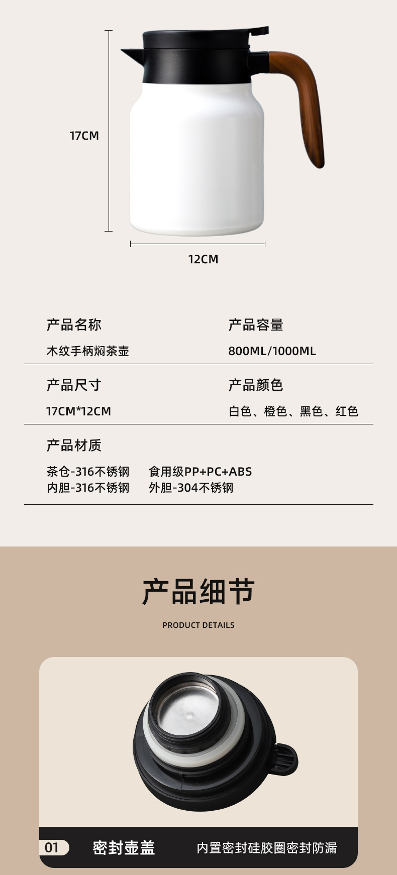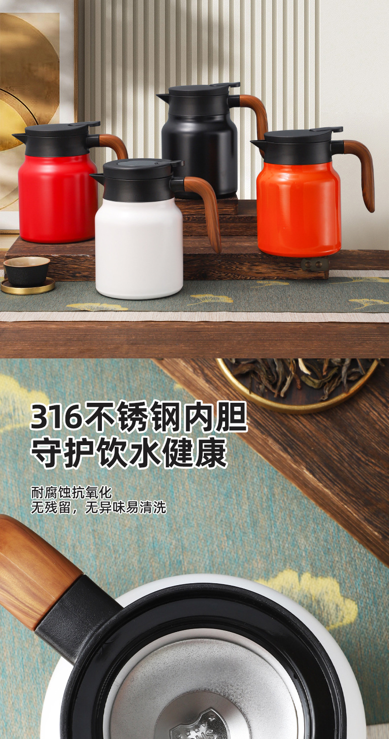 새로운 나무 손잡이 스튜 주전자 나무 곡물 손잡이 주전자 스테인리스 열 보존 냄비 진공 대용량 가정용 주전자
