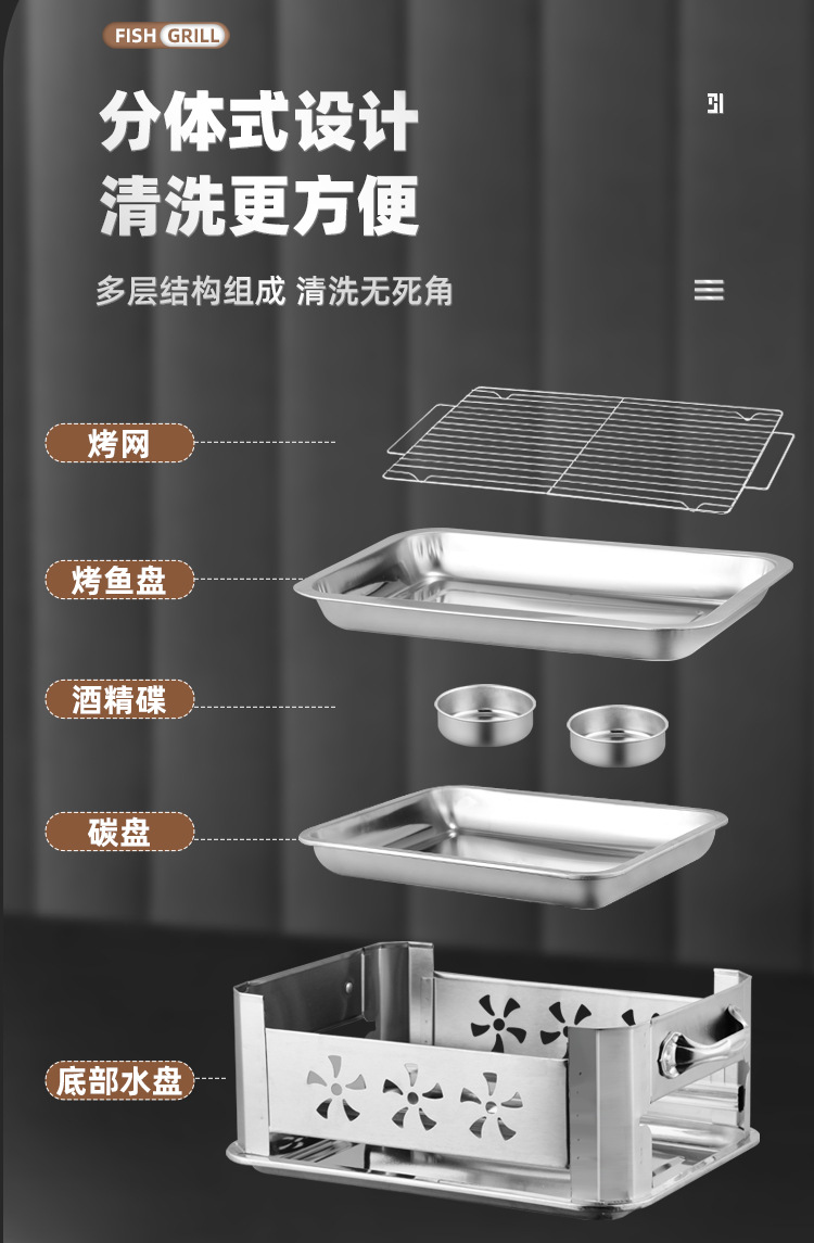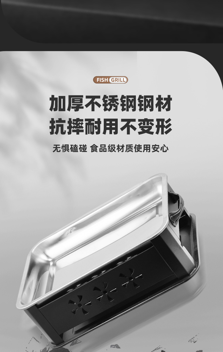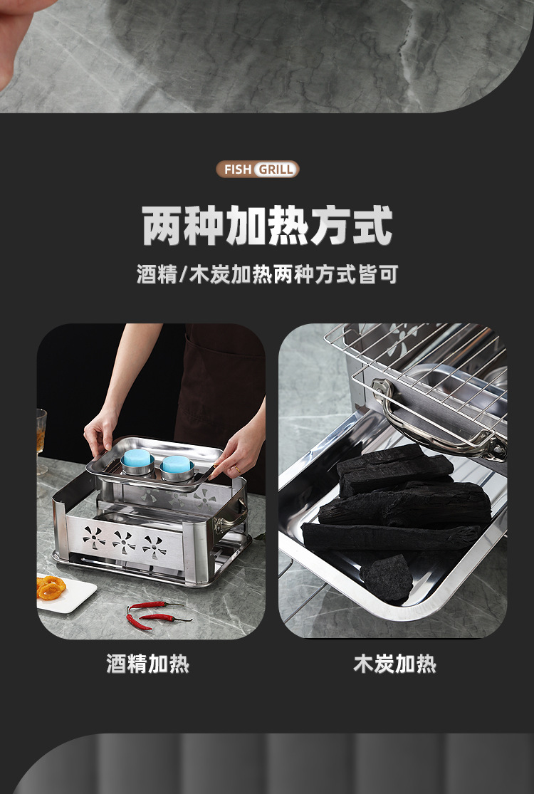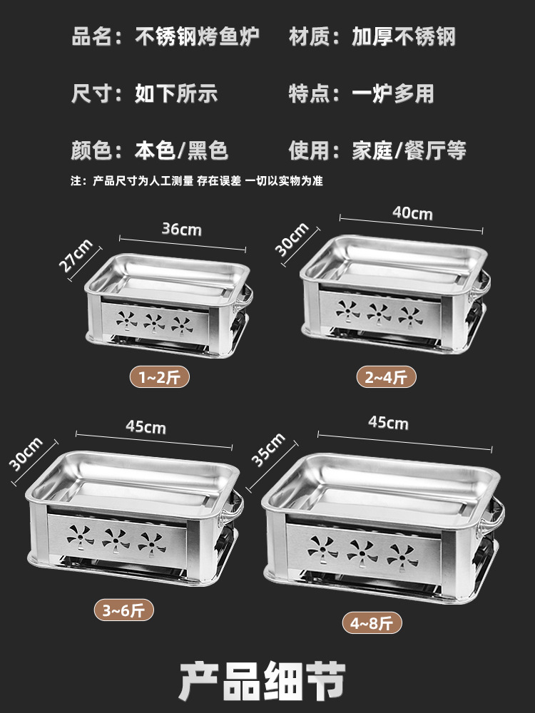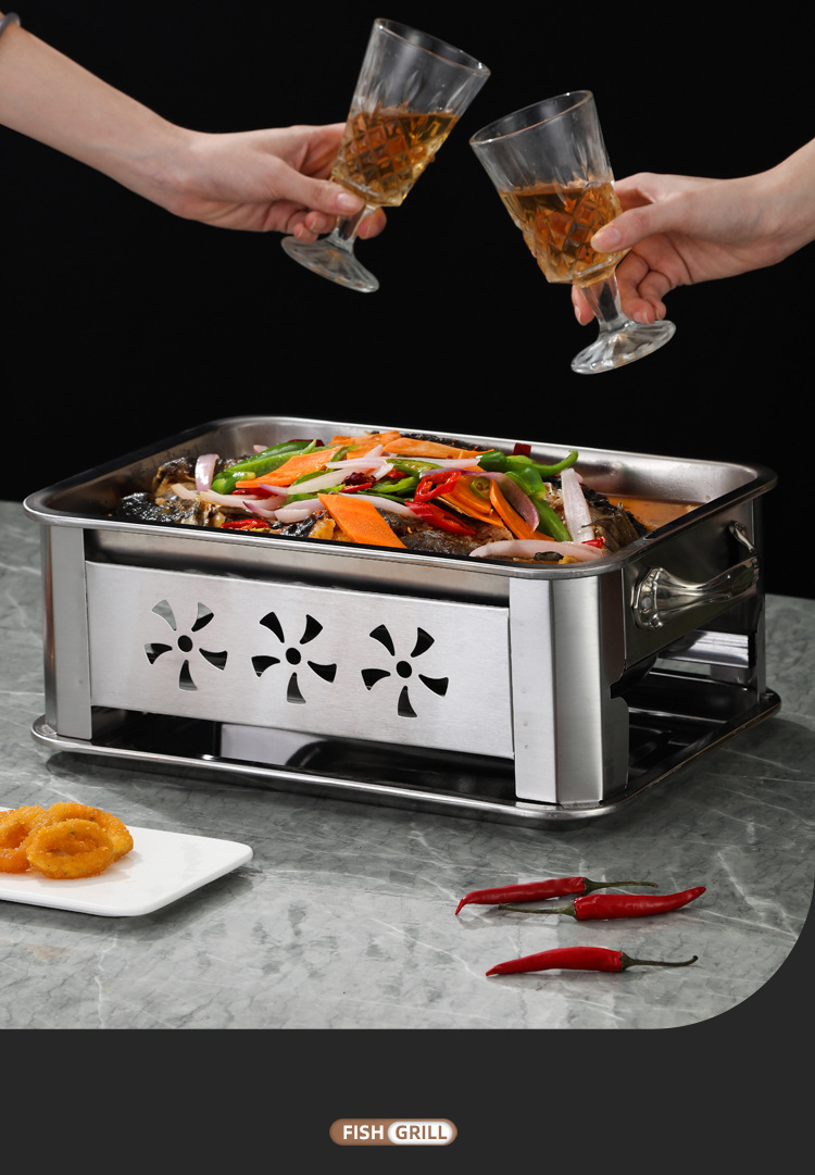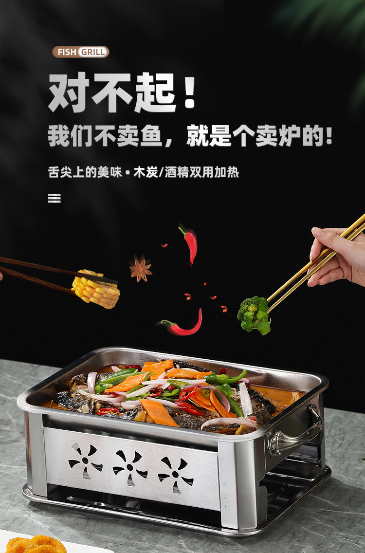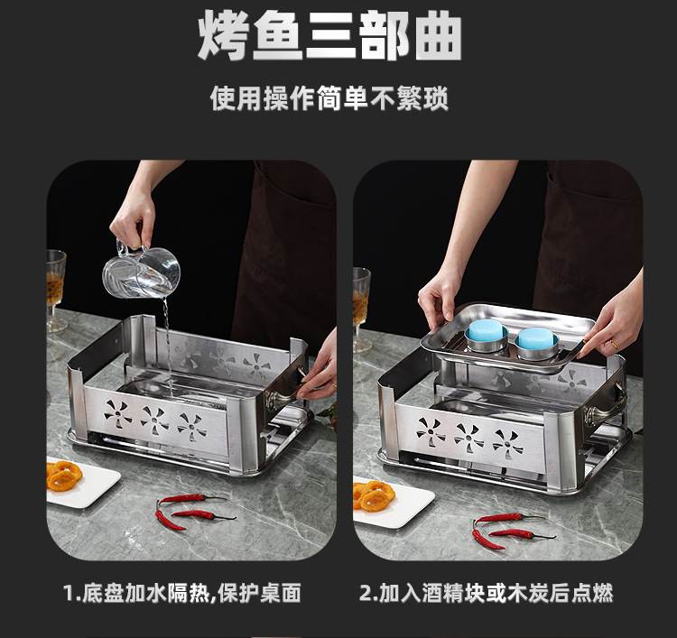 생선 그릴 스테인레스 스틸 상업용 생선 그릴 가정용 탄소 오븐 무연 숯 스토브 직사각형 알코올 스토브 추가 두꺼운