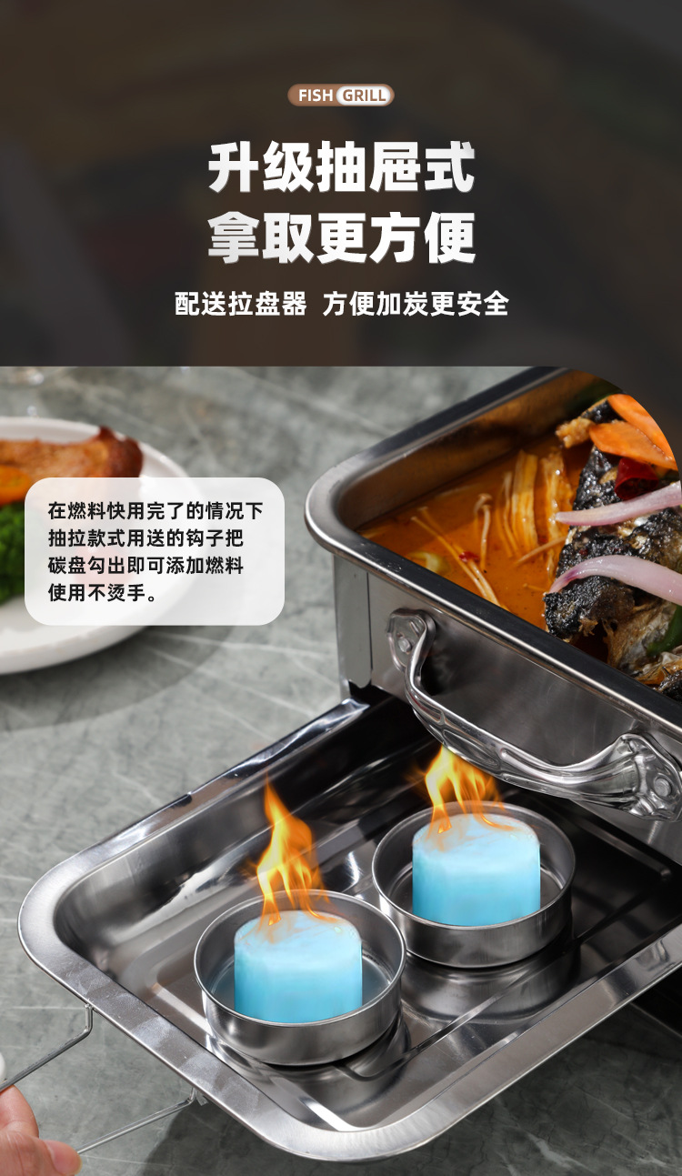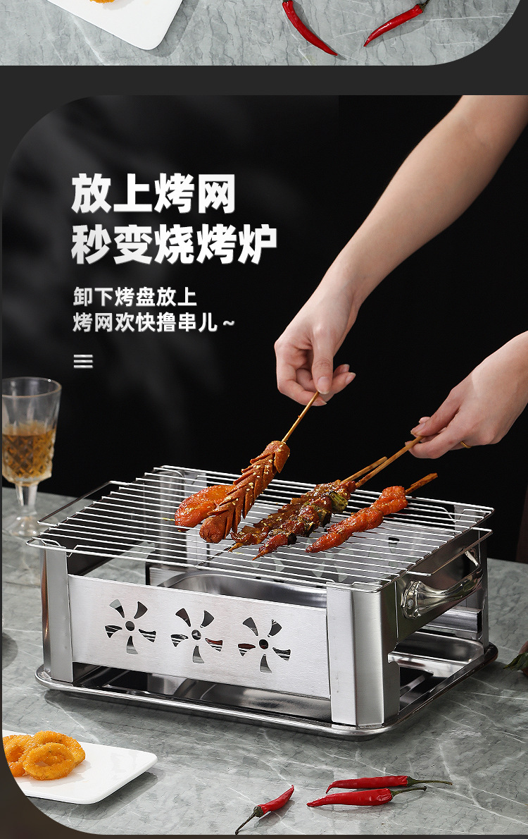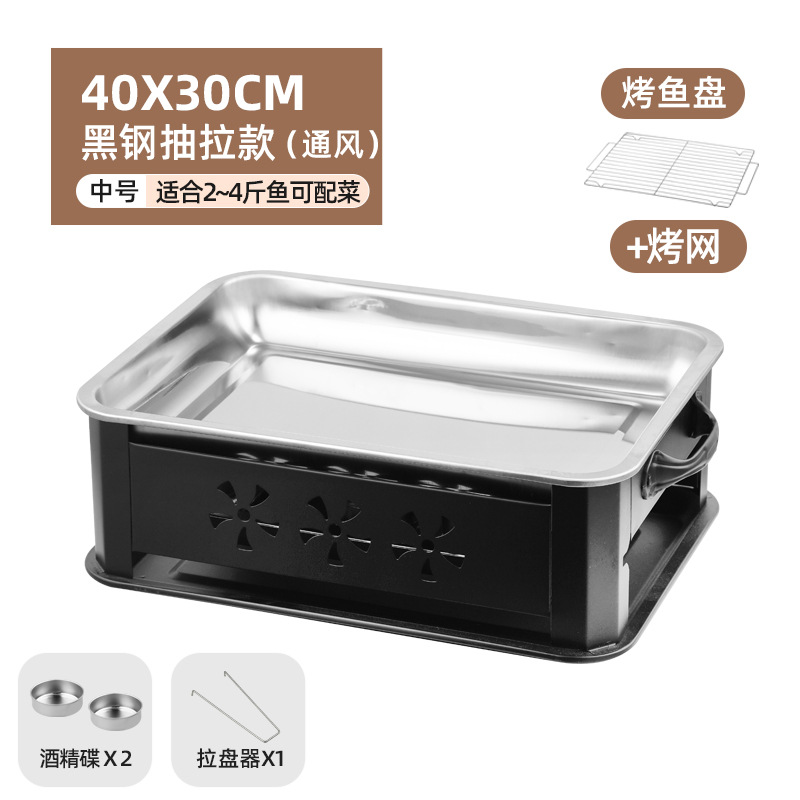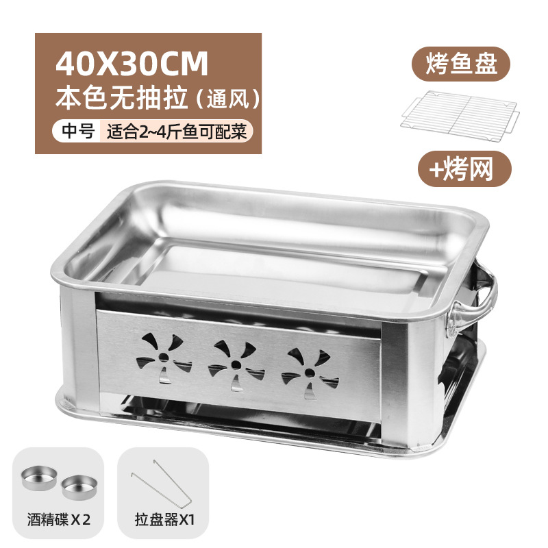 생선 그릴 스테인레스 스틸 상업용 생선 그릴 가정용 탄소 오븐 무연 숯 스토브 직사각형 알코올 스토브 추가 두꺼운스토어 가기