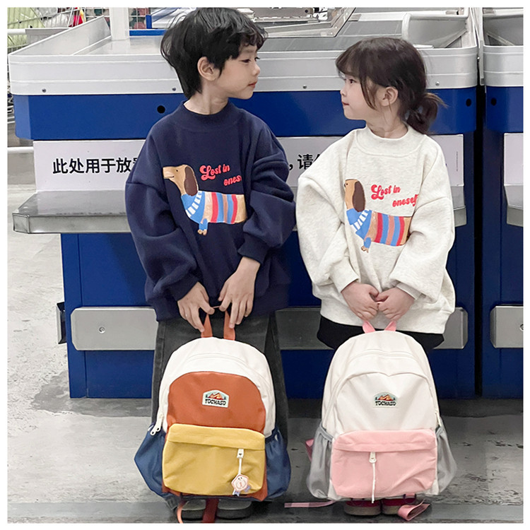 새로운 대비 색상 어린이 배낭 귀여운 유치원 학교 가방 소년과 소녀 캐주얼 경량 여행 배낭