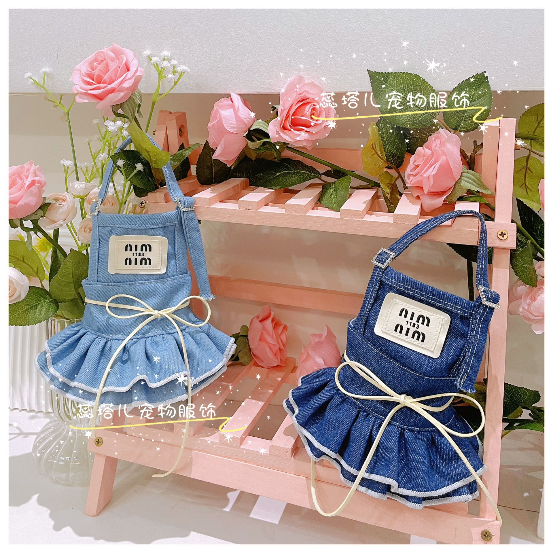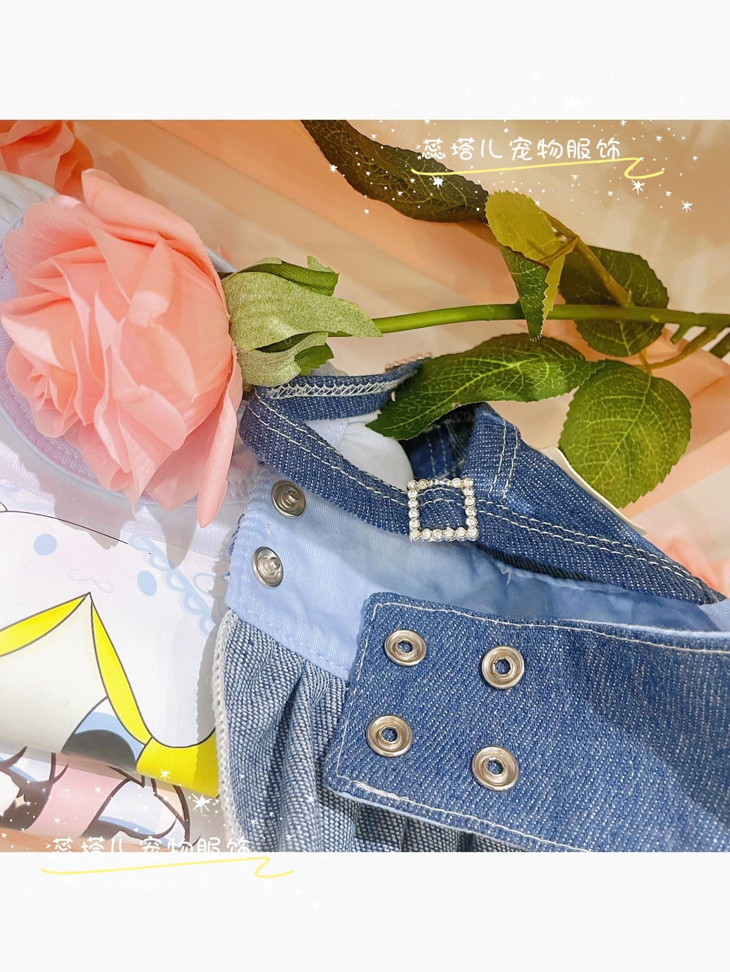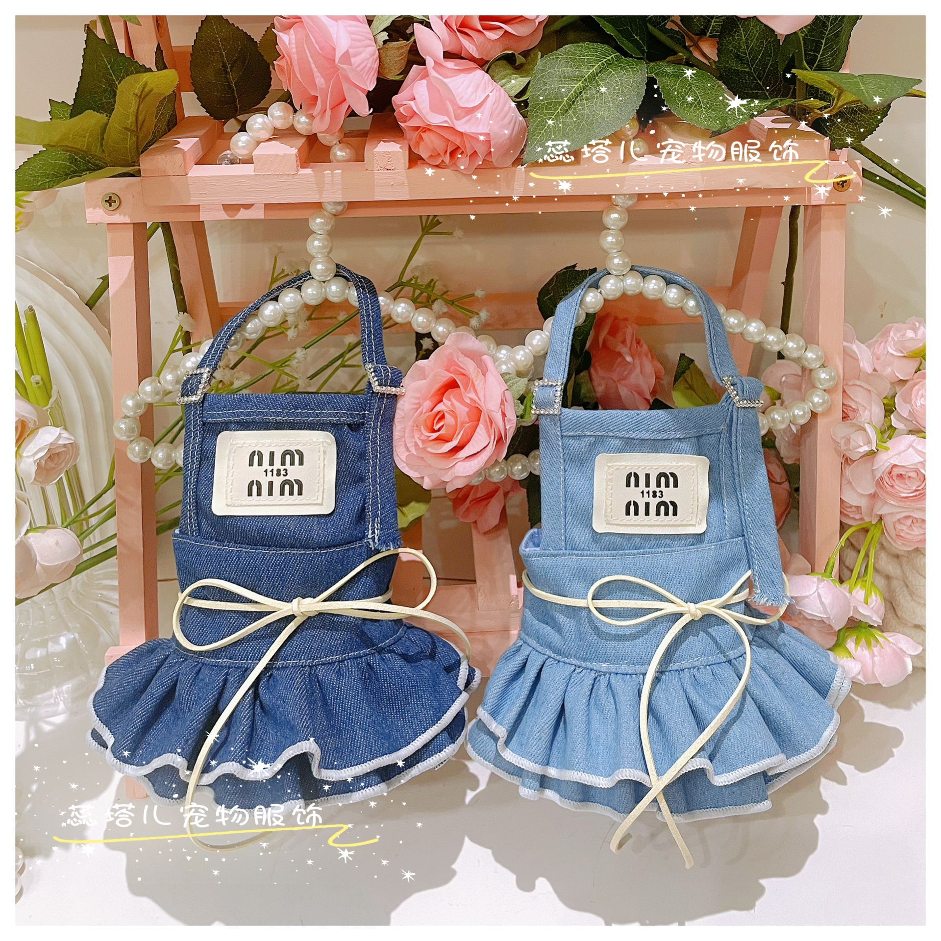 애완 동물 의류 Rital 오리지널 요크셔 비숑 소형견 한국 스타일 데님 슈트 서스펜더 스커트 개 옷스토어 가기