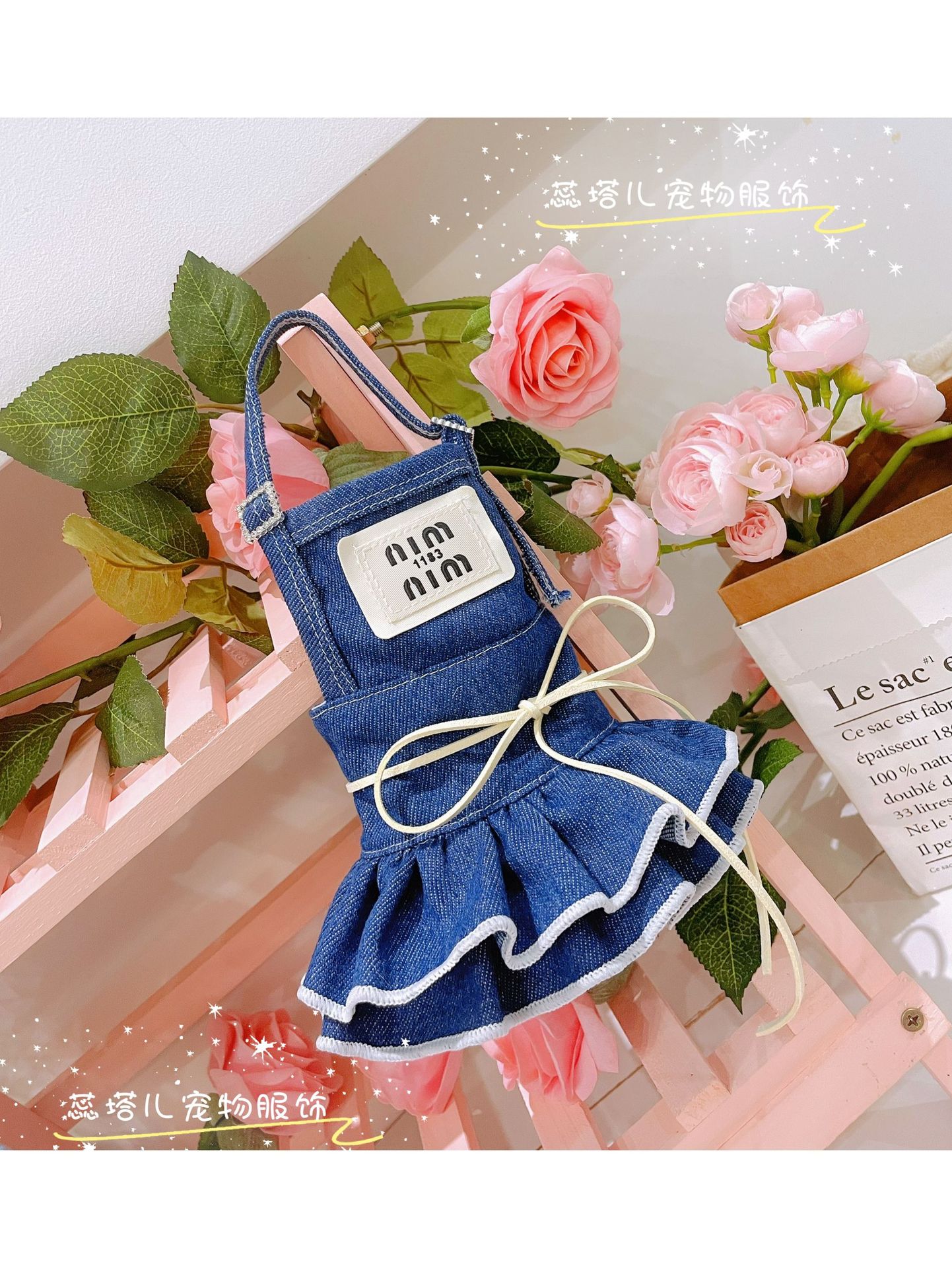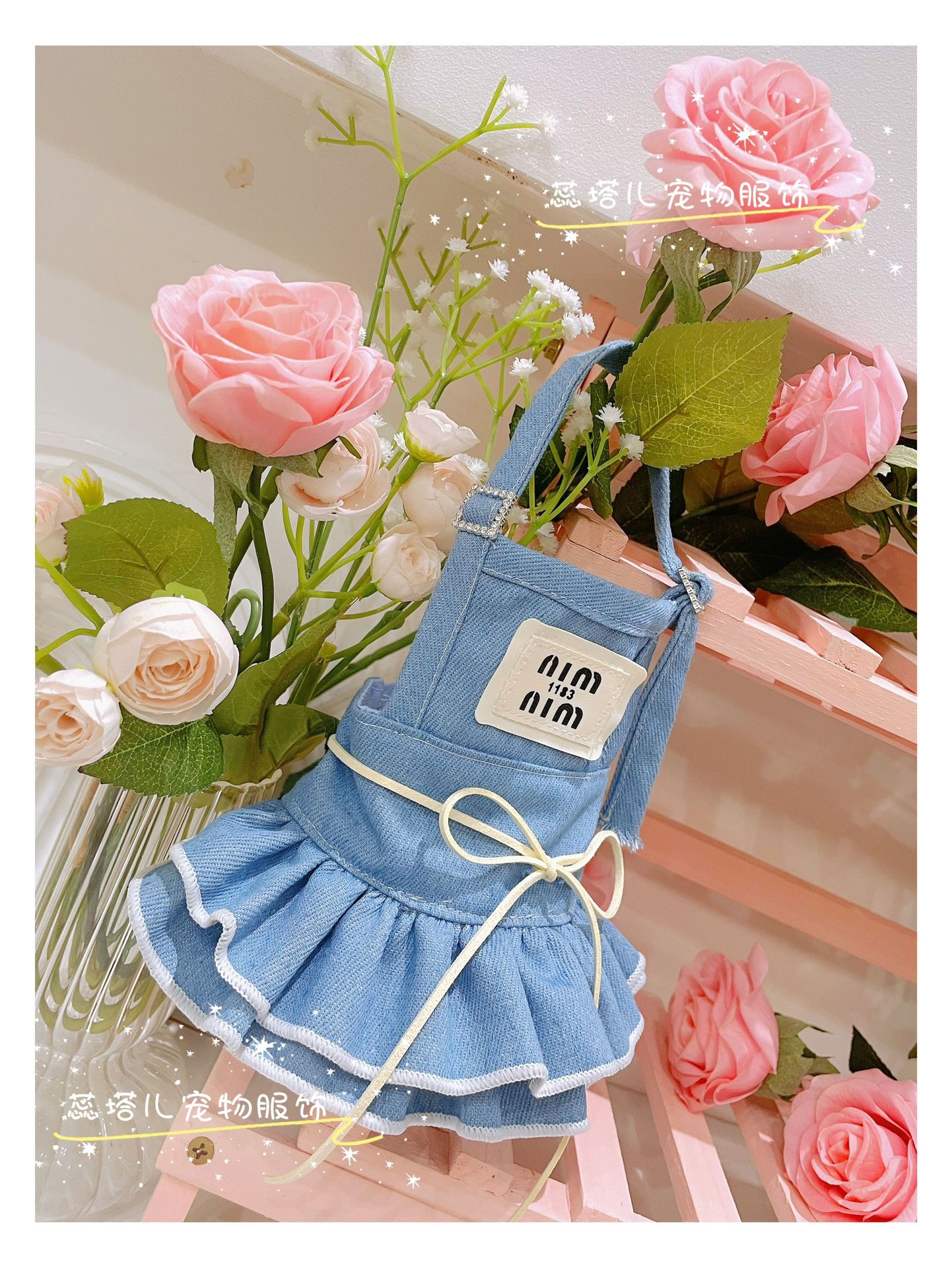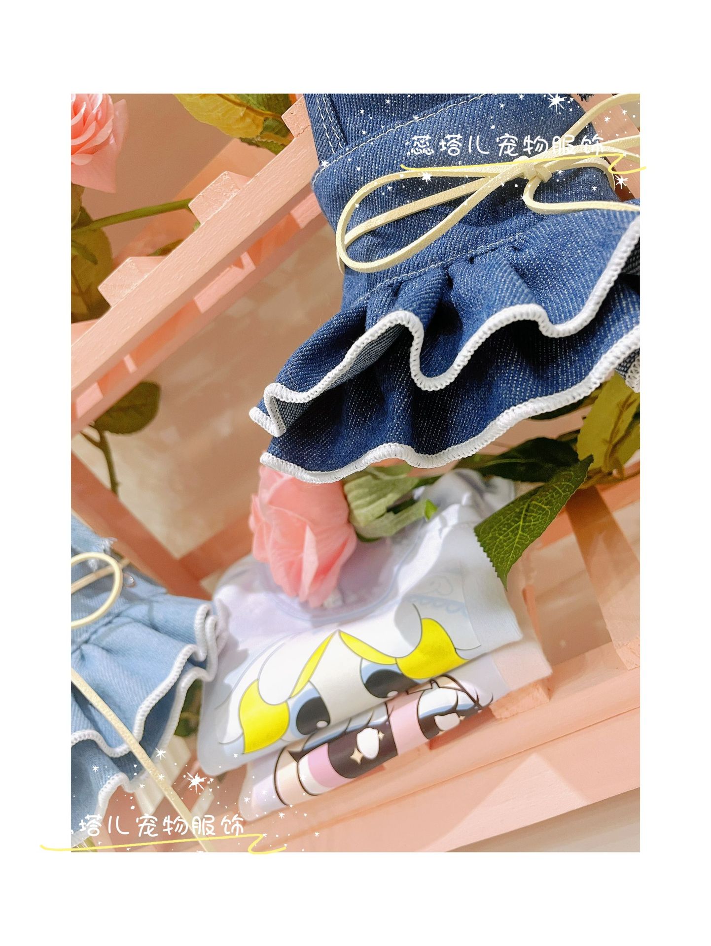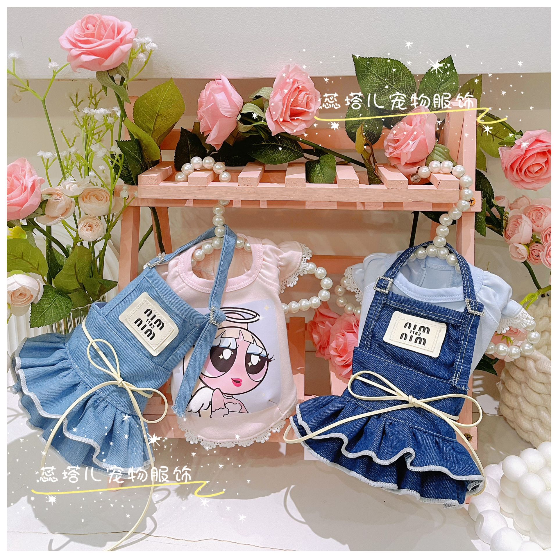 애완 동물 의류 Rital 오리지널 요크셔 비숑 소형견 한국 스타일 데님 슈트 서스펜더 스커트 개 옷스토어 가기