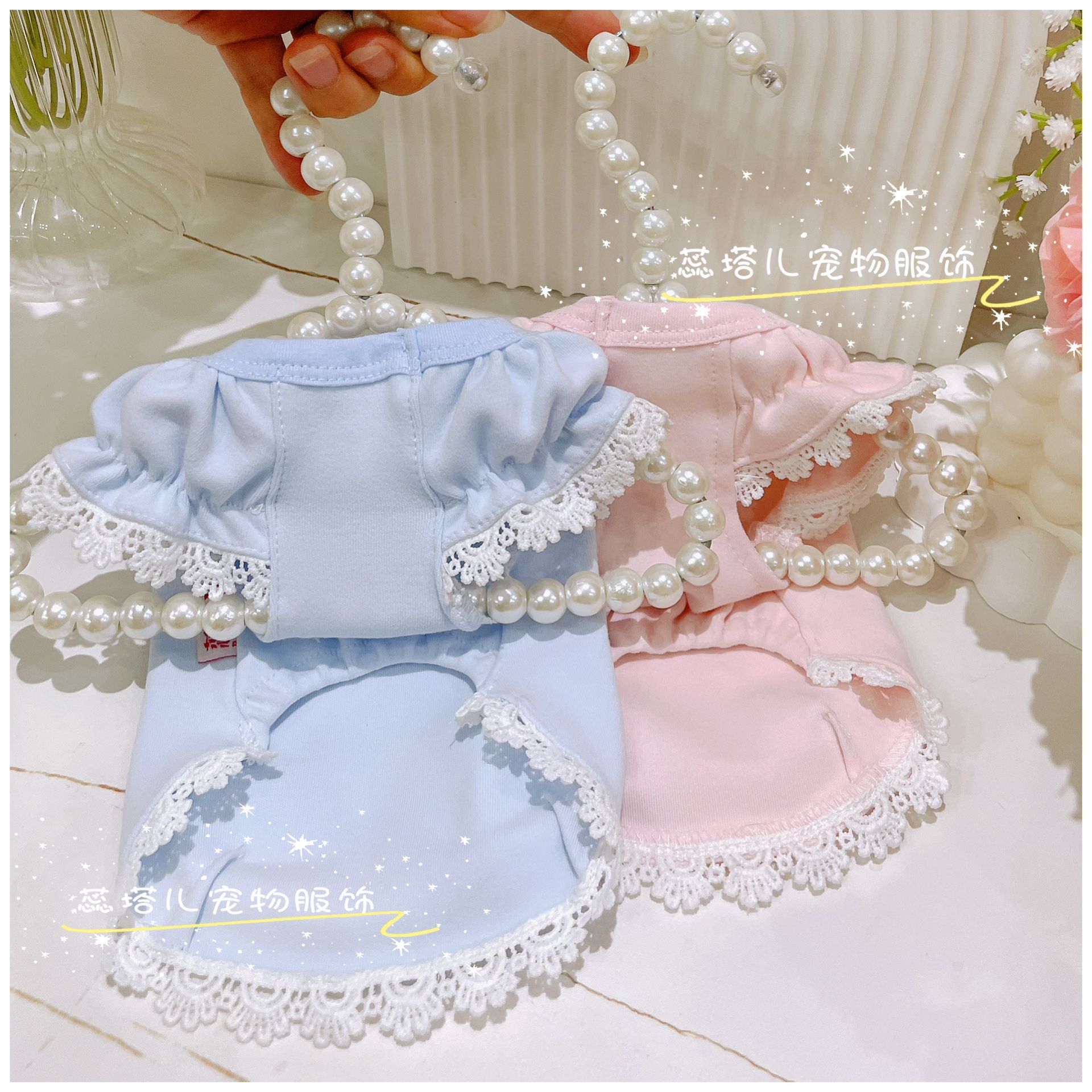 애완 동물 의류 Rital 오리지널 요크셔 비숑 소형견 한국 스타일 데님 슈트 서스펜더 스커트 개 옷