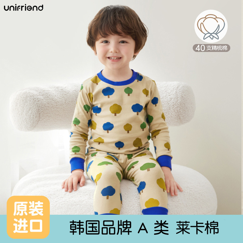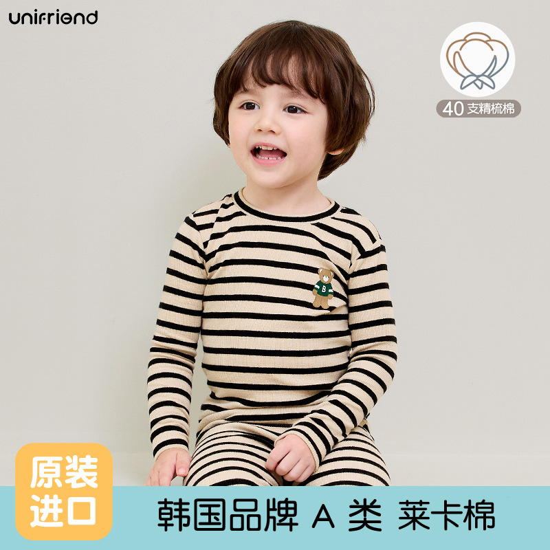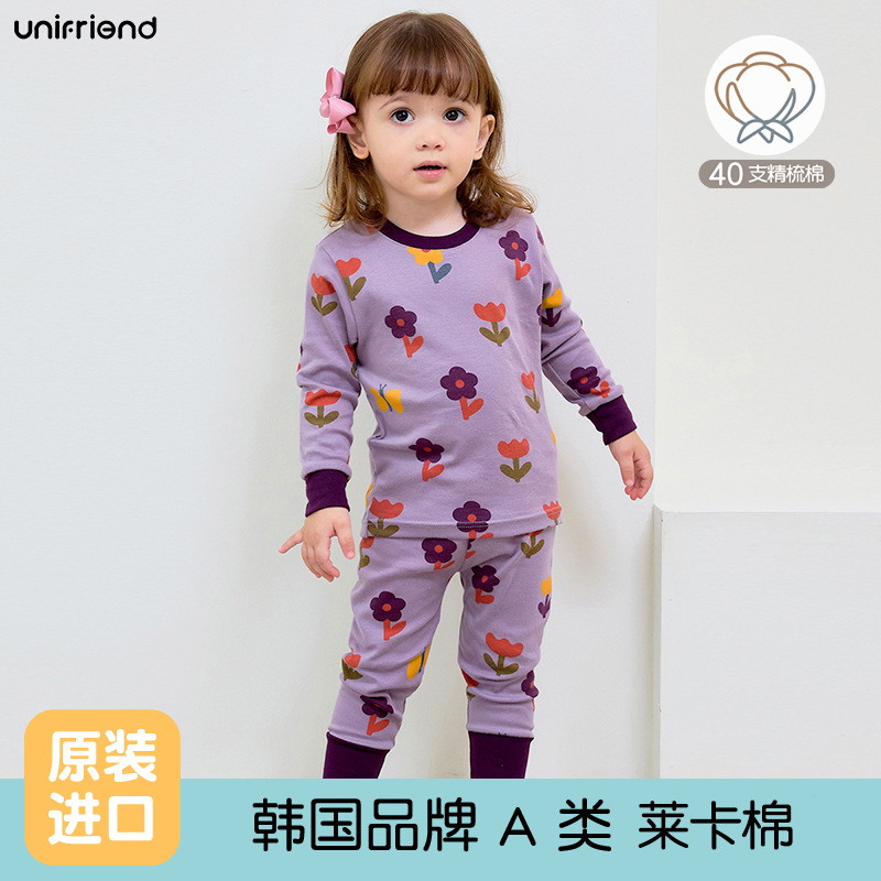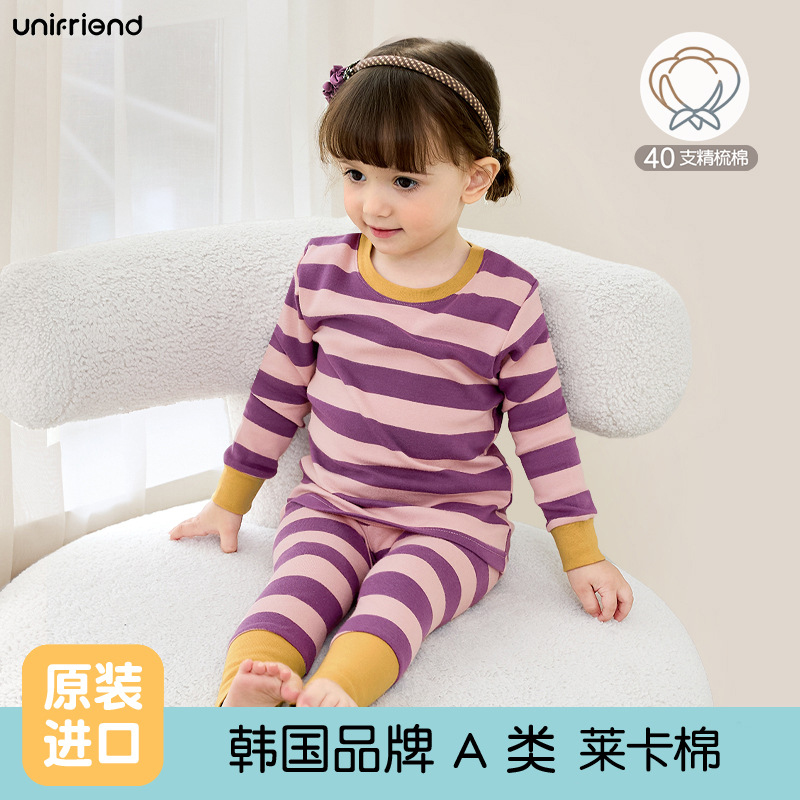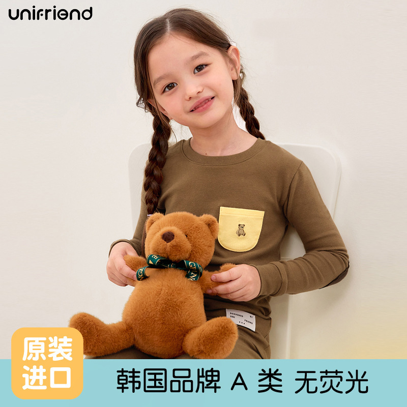 Unifriend 가을, 겨울 새로운 어린이 가을 옷과 긴 바지 카테고리 a 아기 속옷 세트 소년과 소녀 가정 의류 세트스토어 가기